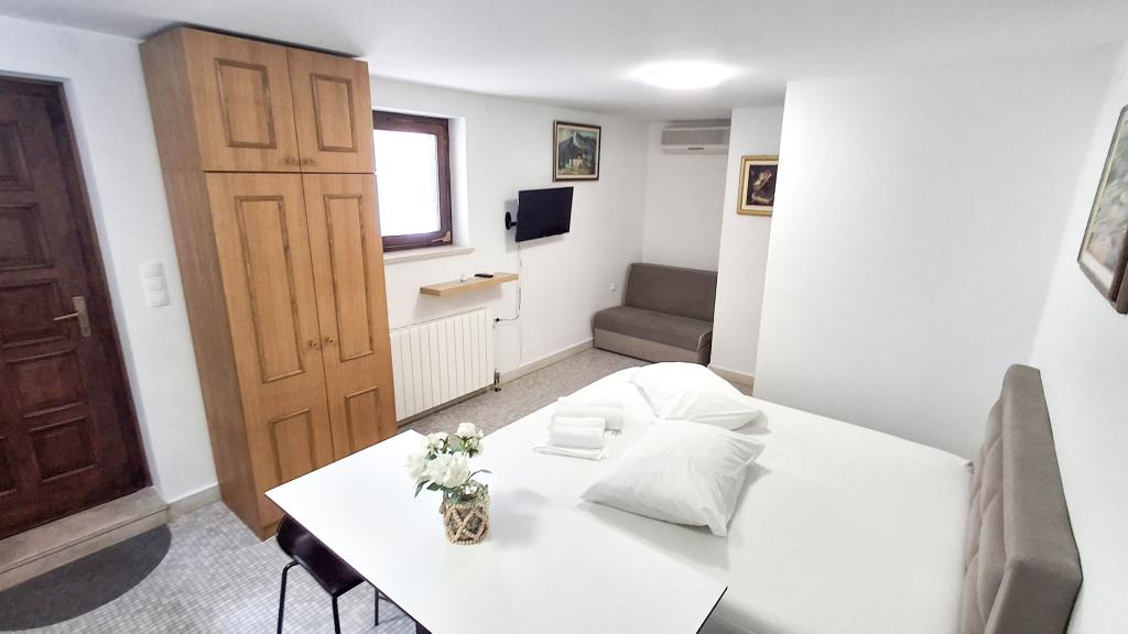 W sierpniu wynajęte dwa apartamenty parter i I piętro. Bardzo blisko pięknej plaży, blisko sklepów. Apartamenty czyste i wyposażone w najpotrzebniejsze rzeczy. Klimatyzacja ale tylko w jednym pomieszczeniu na apartament, super miejsce na grilla. Najlepiej wynajmować cały dom ze znajomymi. Właściciele mili uśmiechnięci. Na pewno wrócimy. Polecam.