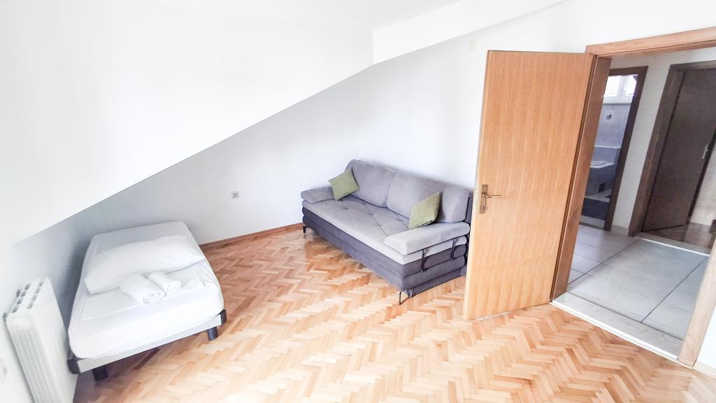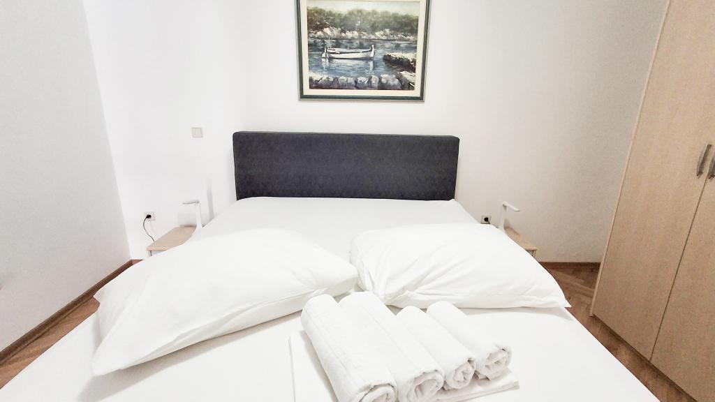 Mieszkanie ma dobrą lokalizację i duży potencjał, jednak powinno być dobrze odnowione, aby uzasadniało cenę noclegu w sezonie, która wynosi 150 € za noc! Przede wszystkim warto zainwestować w izolację akustyczną wewnętrzną, gdyż hałas pomiędzy mieszkaniami jest nie do zniesienia. Zwykle chodzenie po mieszkaniu, przesuwanie krzeseł w jadalni, coś przypadkowo spadającego na podłogę i tym podobne powoduje duży hałas, więc w tym mieszkaniu nie można oczekiwać spokojnych wakacji. Mieszkanie jest duże i przestronne, jednak jak za tak wysoką cenę jest naprawdę słabo wyposażone. Klimatyzator jest głośny i działa tylko w jednym pomieszczeniu. Kuchnia zniszczona, słabo wyposażona. Łazienka jest średnia, nic specjalnego. Co więcej, w mieszkaniu jest tylko jedna sypialnia, a druga to tak naprawdę salon/jadalnia, w którym zamiast kanapy znajdują się niewygodne łóżka, których rozmiar jest trudny do obrócenia przez osobę dorosłą, nie mówiąc już o włożeniu się do łóżka. dobry sen. Jedynym pozytywem jest lokalizacja, blisko plaży, ale to nie wystarczy, aby był wart swojej ceny wywoławczej. Gospodarz jest miły, jednak nie miał większego wpływu na kierowane do niego skargi dotyczące czystości i hałasu.