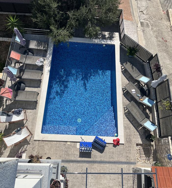 Przyjechaliśmy na tygodniowy jesienny urlop pod sam koniec sezonu, naszą rodziną złożoną z dwójki dorosłych i dwójki dzieci, i zatrzymaliśmy się w dolnym apartamencie, który był absolutnie idealny. Czysty, w pełni wyposażony i idealnie duży, zarówno w środku, jak i na balkonie z przepięknym widokiem. Darko jest wspaniałym gospodarzem i zadbał o to, abyśmy czuli się mile widziani. Grill i stół przy basenie były idealnym miejscem na relaks i naprawdę cieszyliśmy się krótkimi spacerami do idealnych miejsc do pływania. Wspaniały pobyt 10/10!