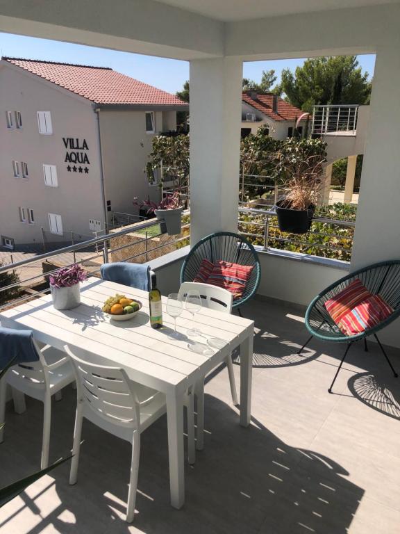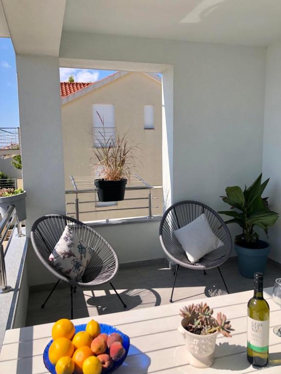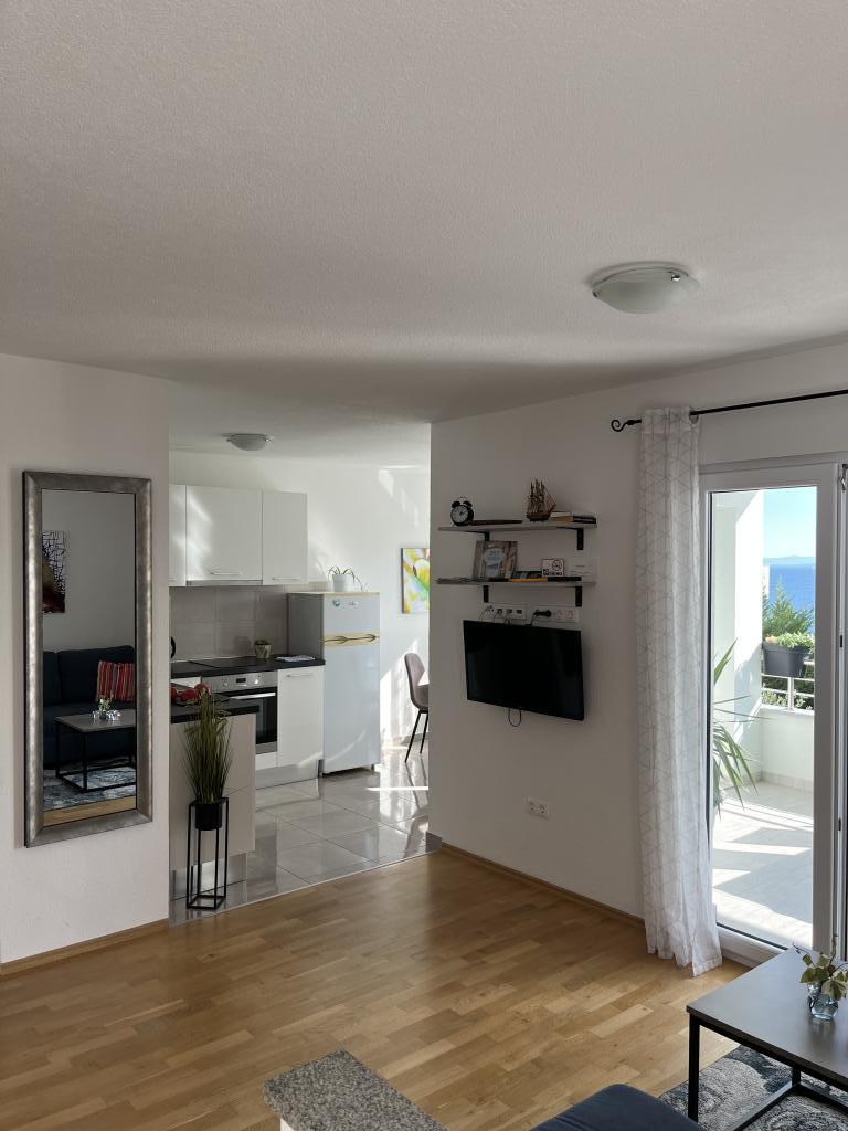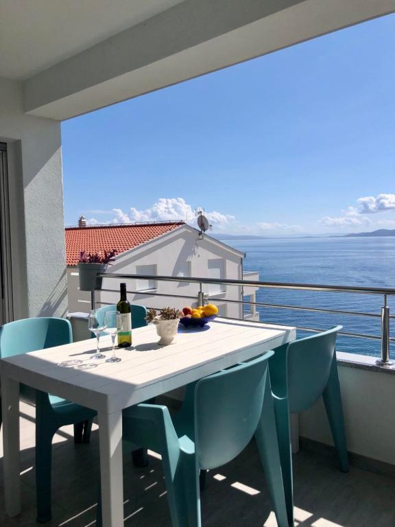 Obecnie przebywamy w apartamencie. Widok jest przecudowny. Na balkonie bez względu na porę dnia znajdziecie cień aby podelwktowqc się cudnym widokiem na morze. Każde zdjęcie przedstawia rzeczywisty wygląd apartamentu. To najlepszy apartament w jakim dotąd byliśmy na Chorwacji. Gorąco polecam. Jesteśmy z pieskiem i dwójka dzieci i jest cudownie