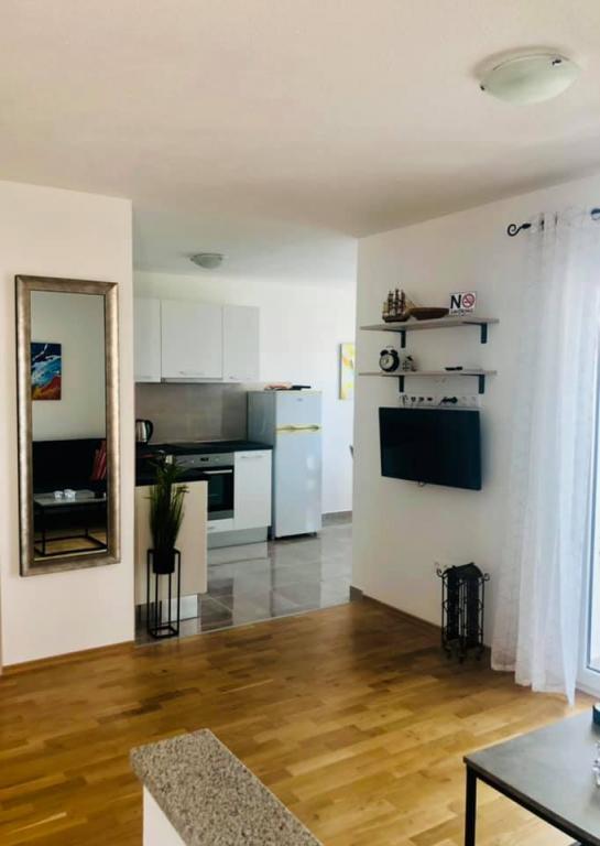 Wysoki standard apartamentów. Jest tak, jak na zdjęciach. Czysto, schludnie i nie brak niczego. Jest zmywarka, mikrofala, ekspres do kawy, pralka, TV. Na miejscu grill, basen i leżaki. Bardzo blisko morza. Świetna lokalizacja do krótkich jak i długich wycieczek np.: Trogir, Split, Szybenik, Biokovo, Dubrownik, Mostar... Gospodarz bardzo miły i cierpliwy.