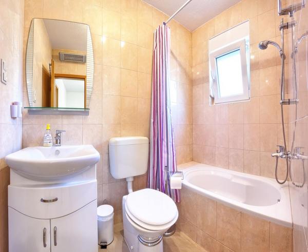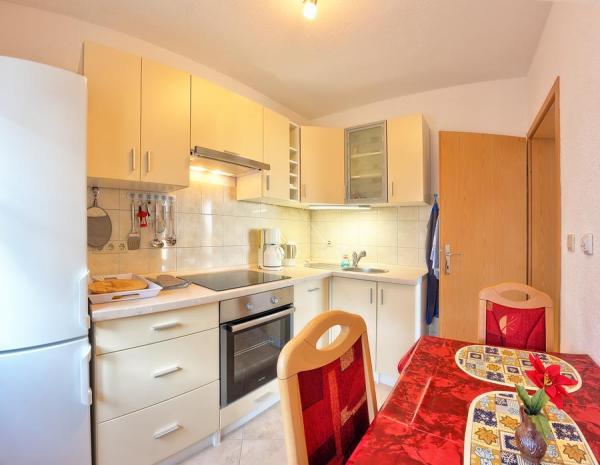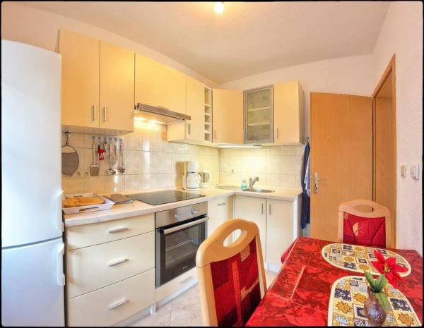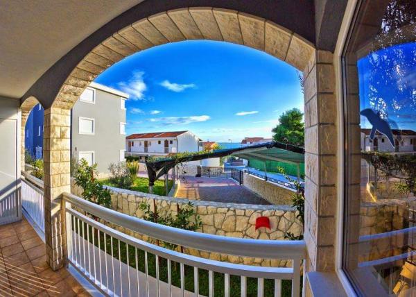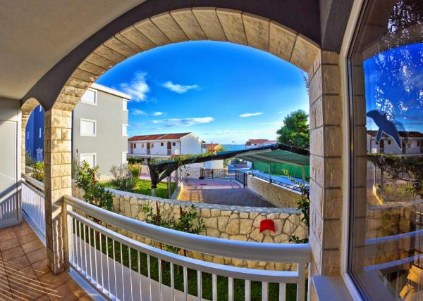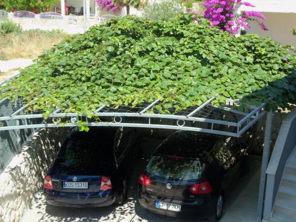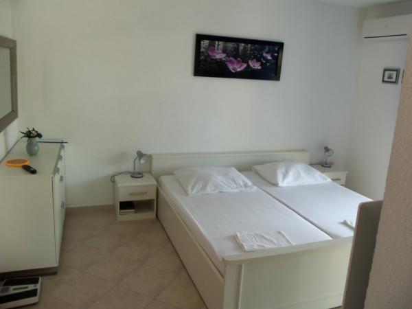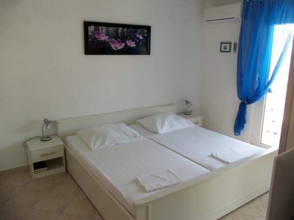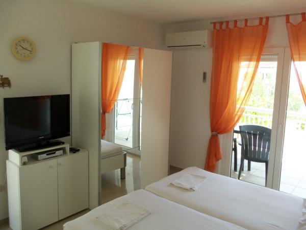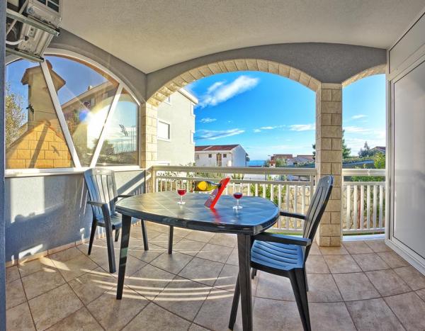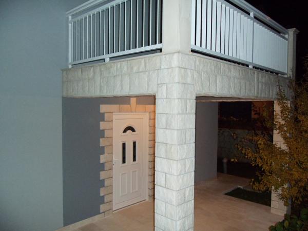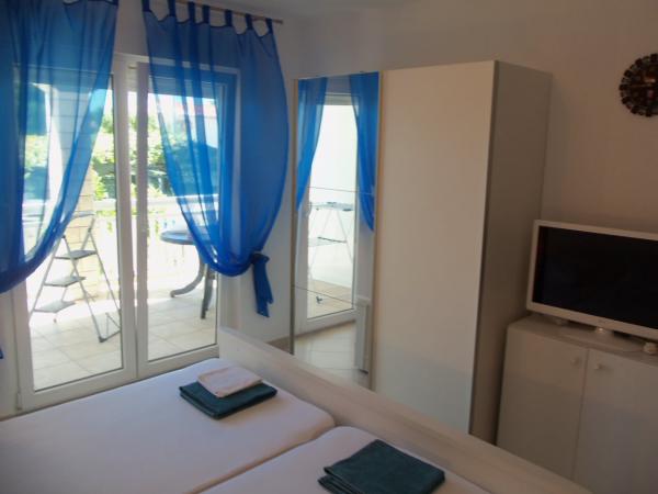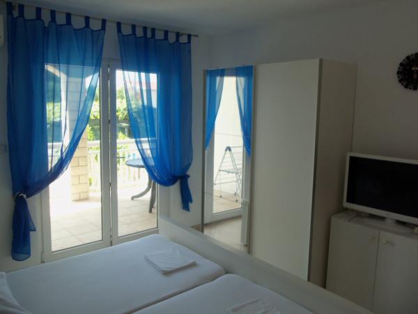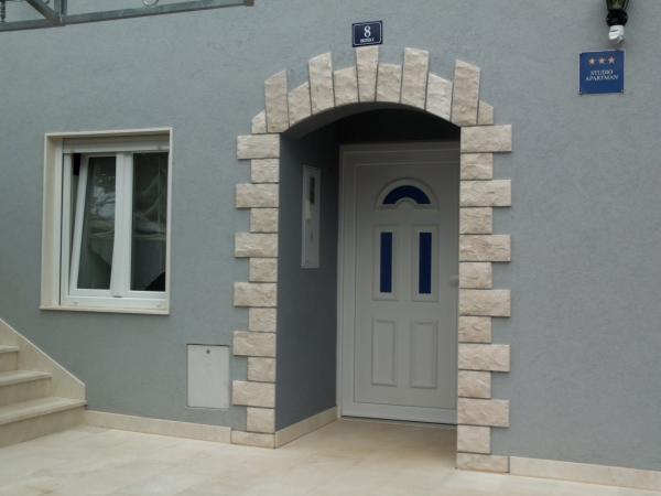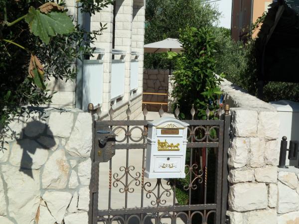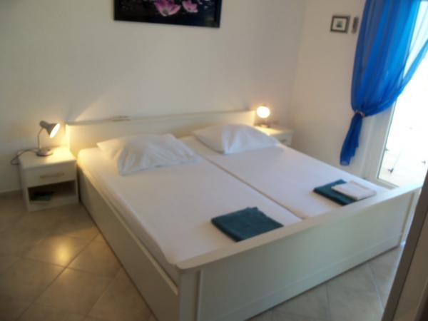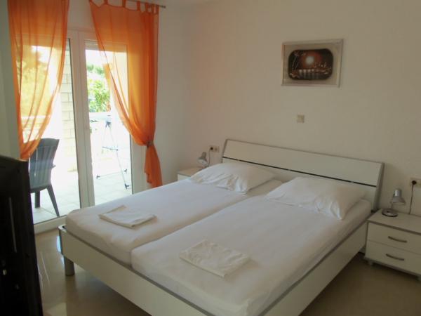 Nowocześnie wyposażone dwa apartamenty typu studio na parterze z balkonami z widokiem na morze i wyspy. Jest też grill, a parking jest w pełnym cieniu skały. Ogród krajobrazowy z cytryną, pomarańczą, mandarynką, kiwi, lipieniem, syfonem i małym drzewem figowym Wszystko jest 200 metrów od morza. 500 m od restauracji lub 1 km od sklepów, urzędów pocztowych, aptek itp.