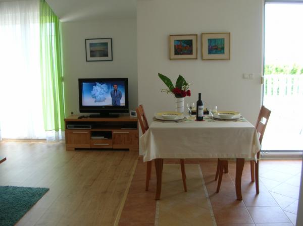 Villa Matane, dom z trzema apartamentami (4 gwiazdki) w cichym i słonecznym miejscu, zaledwie pięć minut od morza i kamienistej plaży. Apartament nr 1 dla 2 osób, 1 piętro, 50 m2, południowy wschód, zadaszony taras (18 m2), z widokiem na morze. Pokój dzienny z aneksem kuchennym, kanapa rozkładana dla 2 osób (160 cm x 200 cm), 1 sypialnia z łóżkiem podwójnym (160 cm x 200 cm). Apartament nr 2, dla dwóch osób, 1 piętro 60 m2, południowy zachód, częściowo zadaszony taras (18 m2), z widokiem na morze. pokój dzienny z otwartą kuchnią. Sofa jako łóżko dla dwóch osób (150 cm x 200 cm) oraz sofę. 1 sypialnia z podwójnym łóżkiem (2x90 cm x 200 cm). TV / Sat, klimatyzację i centralne ogrzewanie. Otwarta kuchnia, w pełni wyposażone we wszystkie niezbędne urządzenia elektrycznego (4 szklano-ceramiczna płyta grzewcza, piekarnik, zmywarka, lodówka / zamrażarka, kuchenka mikrofalowa, ekspres do kawy i toster), naczynia do 6 osób i ręczników kuchennych. W łazience (prysznic / WC), pralka, suszarka do włosów i ręczniki.