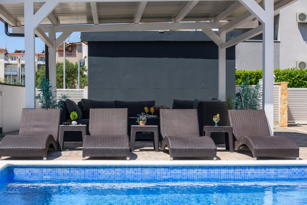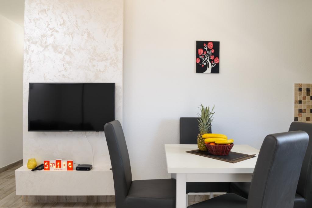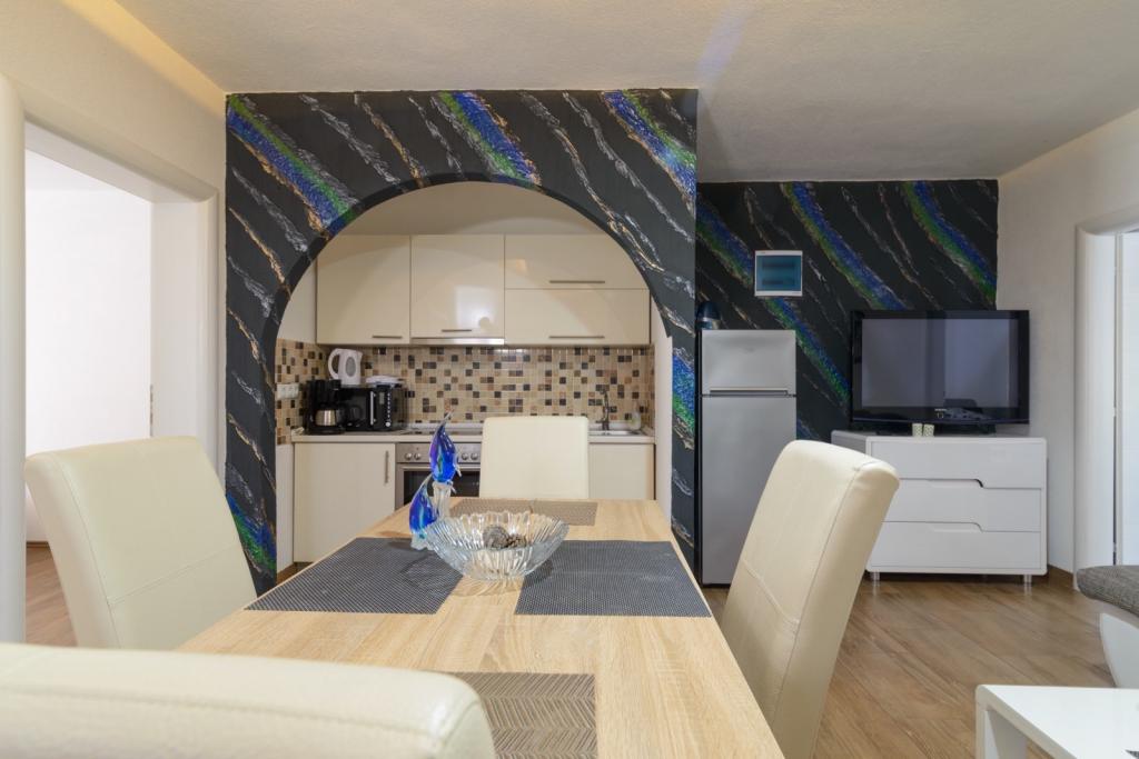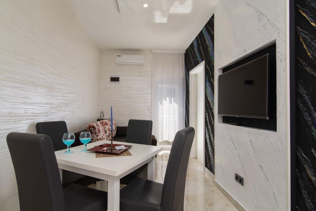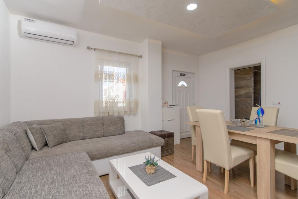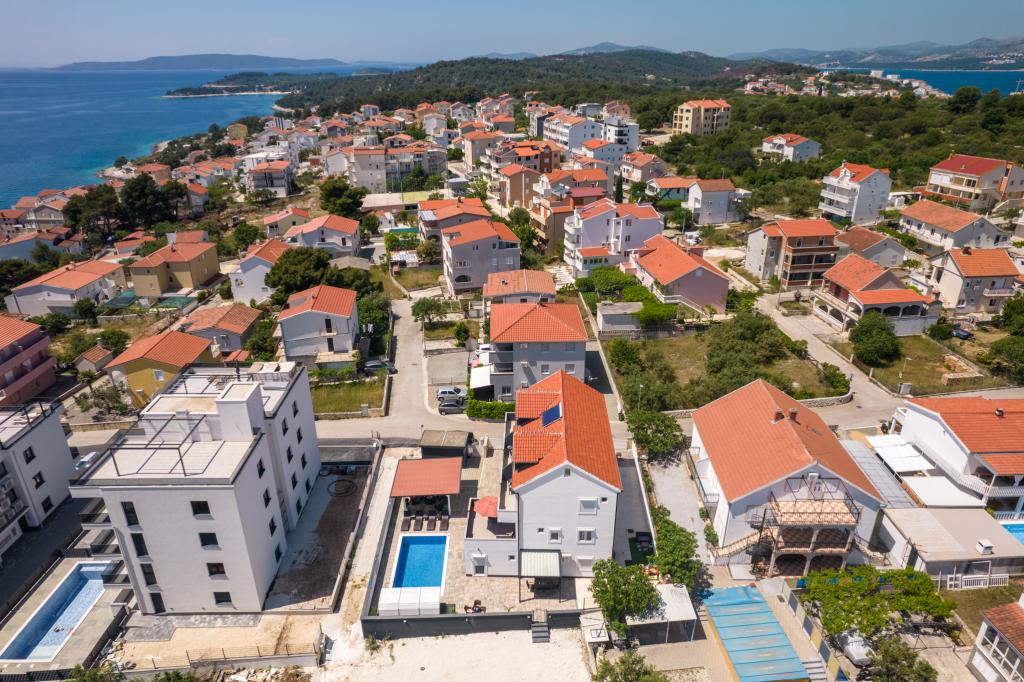 Apartamenty znajdują się w nowo wyposażonym Villi ET A w miejscowości Okrug Gornji na wyspie Ciovo, która jest połączona z historycznym miastem Trogir. Całkowicie i nowo wyposażone apartamenty w pięknej części wyspy Ciovo. Tylko 70 m od morza. Przed apartamentem znajduje się basen i duży grill. Apartamenty zawierają wszystko, czego potrzebujesz na rodzinne wakacje z dziećmi lub przyjaciółmi. Willa została wybudowana w 2017 roku i zawiera siedem apartamentów, wszystkie nowoczesne i dostosowane do turystyki. Obiekt znajduje się 10 minut spacerem od centrum miasta, w którym można znaleźć: ambulans, aptekę, pocztę, różne marki, napoje ze świeżymi produktami spożywczymi, wiele restauracji i kawiarni oraz słynną plażę Copacabana. I tylko 3, 5 km od centrum Trogiru można dojechać samochodem, autobusem lub statkiem. Wszystkim gościom życzymy miłego i miłego lata.