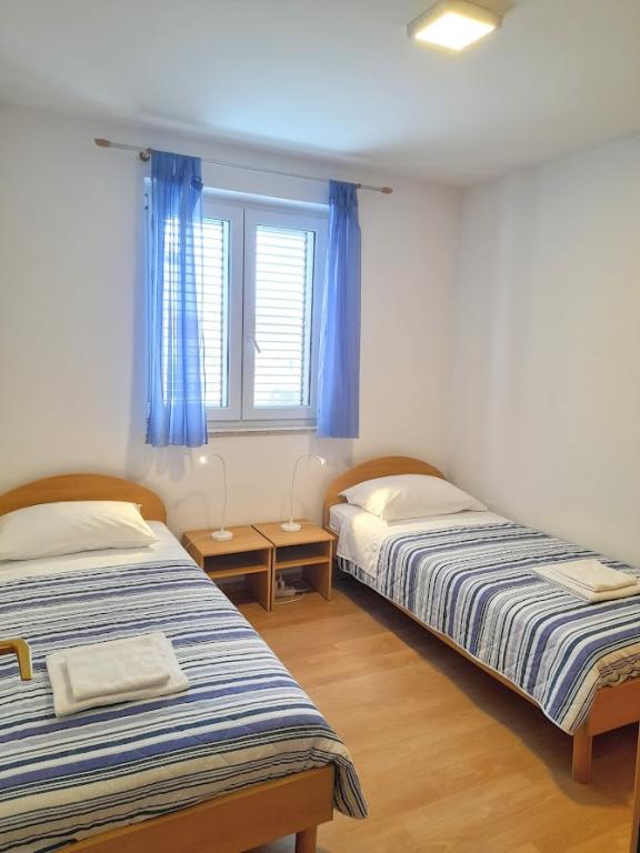 Apartament Banić znajduje się w miejscowości Melin, spokojnej części miasta Cres. Apartament znajduje się na pierwszym piętrze i może pomieścić maksymalnie 4 osoby. Składa się z dwóch sypialni, salonu z kuchnią i jadalnią, łazienki, przedpokoju oraz balkonu. Apartament jest klimatyzowany, oferuje bezpłatne Wi-Fi i telewizję satelitarną. Klimatyzacja znajduje się w salonie. Ręczniki, pościel i sprzątanie końcowe są wliczone w cenę. Do dyspozycji gości jest parking przy głównym wejściu do budynku. Łóżka można rozdzielić lub połączyć w razie potrzeby po wcześniejszym uzgodnieniu. W pobliżu budynku znajduje się park dla dzieci. Plaże i centrum miasta oddalone są od apartamentu o 10-15 minut spacerem.