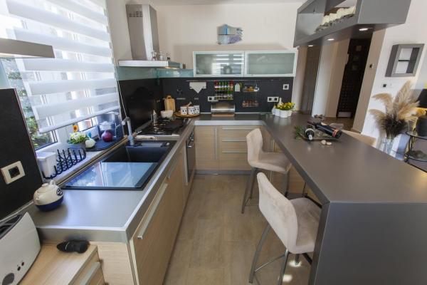 Luksusowy i nowoczesny apartament z ogrodem zamknąć plażę Ten luksusowy pensjonat znajduje się w cichej dzielnicy mieszkalnej miasta Cres, tylko 50 m od plaży. Apartament 120 metrów kwadratowych znajduje się częściowo na parterze. Składa się z trzech sypialni, otwartego planu salon i kuchnię i dwie łazienki. Dwie sypialnie wyposażone są w łóżko typu king-size (1, 60 m szerokości), natomiast trzeci (1, 90 m 0, 80 x) ma pojedyncze łóżko. Wygodny salon z widokiem na Adriatyku oferuje przytulną część dzienną oraz telewizor z płaskim ekranem i odtwarzaczem DVD i systemem muzycznym. Nowoczesna kuchnia jest w pełni wyposażona, a także posiada licznik kuchnią jadalnią. Oba wyposażone są w łazienki z prysznicem, umywalką, WC i włosów, jeden z nich także z bidetem. Wszystkie pomieszczenia są ogrzewane święta z ogrzewaniem podłogowym. System klimatyzacji zapewnia przestronny salon z otwartą kuchnią do chłodzenia. Jeśli to konieczne, można użyć warunku określonego tyłu pralki podzielić pokój przy wejściu za darmo. W pełni ogrodzony teren z zewnątrz ogród i taras jest dostępny do wyłącznego użytku i umożliwia dzieci i zwierząt (na życzenie) bezpieczny pobyt na świeżym powietrzu. Taras jest wyposażony w meble ogrodowe, parasol i leżaków i pozwala się widok na morze. Dla przytulnej grill jest dostępny profesjonalny grill gazowy. Samochód można zaparkować za darmo na prywatnym odkrytym parkingu. Wi-Fi jest bezpłatny w całym budynku.