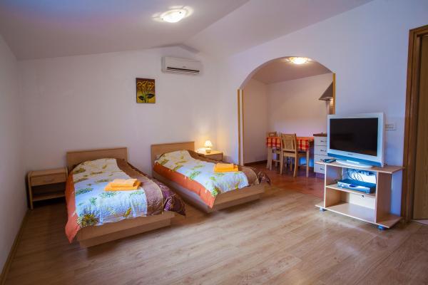 Piękny dom w miejscowości Orlec zaledwie 10 km od miasta Cres, nowoczesnym 4 apartamenty i duża łąka, pozwala w ciszy i spokoju. W każdym apartamencie znajduje się kuchnia, łazienka i dwa łóżka z postavljanjanja możliwość i dodatkowe łóżko. Mieszkania są w pełni wyposażone (pościel, ręczniki, ściereczki, sztućce ...) Ten dom ma również duży prywatny parking, a biorąc pod uwagę to, że znajduje się 300 m nad poziomem morza, można zacząć zwiedzanie starych ścieżek przez gaje oliwne i makia, samochodu lub łodzi turystycznych. Morze i plaża są tylko 2 km, żwirowa plaża i ośrodek czyste morze zapewniają niezapomniane przeżycia dla najmłodszych i niezastąpiony wypoczynku dla dorosłych.