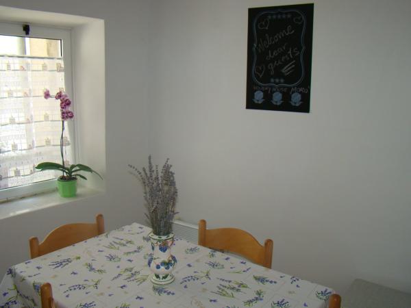 Dom wakacyjny Moro znajduje się w małej wiosce Orlec na wyspie. Ustawić na trzech piętrach. Początkowo są przedpokój, salon, kuchnia, jadalnia, WC, łazienka i kuchnia. Na drugim piętrze wody drewniane schody i znajdują się 3 sypialnie i łazienka. Na trzecim piętrze również wody drewnianych schodów, a tam jest czwarta sypialnia i pokój do relaksu, wypoczynku i rozrywki, który jest wyposażony w gry planszowe. Z tego pokoju można wyjść na taras, który ma wspaniały widok na wsi, morze i okoliczne wyspy. Istnieją dwa klimatyzatory, które chłodzą cały dom. Dom jest wyposażony w telewizję satelitarną i internet. Stocznia jest kamienny stół z krzesłami i grillem.