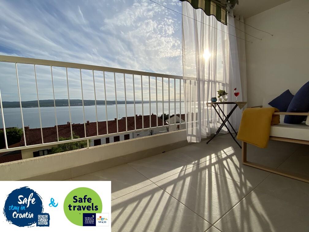 Drodzy Goście, Nowo wyremontowany apartament Blue View **** oferuje wspaniały, dziewiczy widok na wyspę Krk i Morze Adriatyckie. Mieszkanie znajduje się w Crikvenicy, 300m od morza, na drugim piętrze (bez windy), z bezpiecznym wejściem i bezpłatnym publicznym parkingiem na ulicy. Prywatny parking jest również dostępny na życzenie (płatny). Apartament Blue View**** ma powierzchnię 70m2 i oferuje zakwaterowanie dla maksymalnie pięciu osób. Mieszkanie posiada balkon z widokiem na morze z salonem, klimatyzację, Wi-Fi, dwie sypialnie, łazienkę z prysznicem w stylu włoskim oraz toaletę. Istnieje również dodatkowa oddzielna toaleta. Przestronny salon wyposażony jest w duży telewizor z systemem Android. Kuchnia jest w pełni wyposażona w lodówko-zamrażarkę, pralkę, zmywarkę, kuchenkę, czajnik i przelewowy ekspres do kawy. Naprzeciwko budynku znajdują się dwa sklepy. Supermarket Spar oddalony jest od obiektu o 5 minut spacerem.