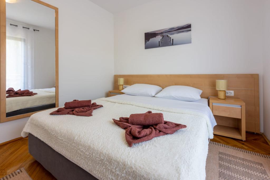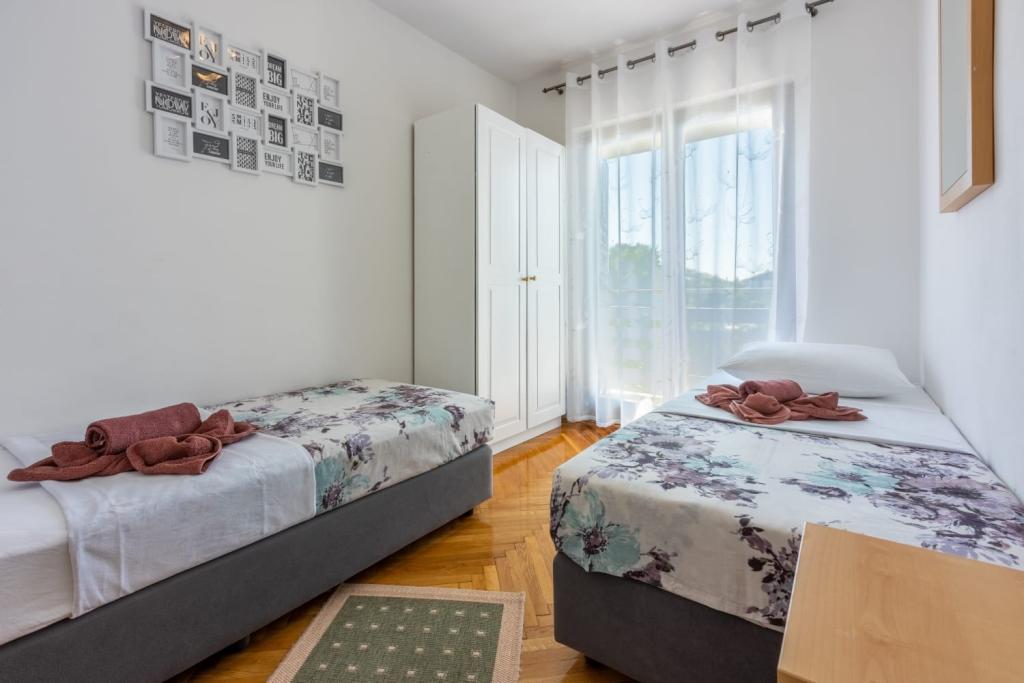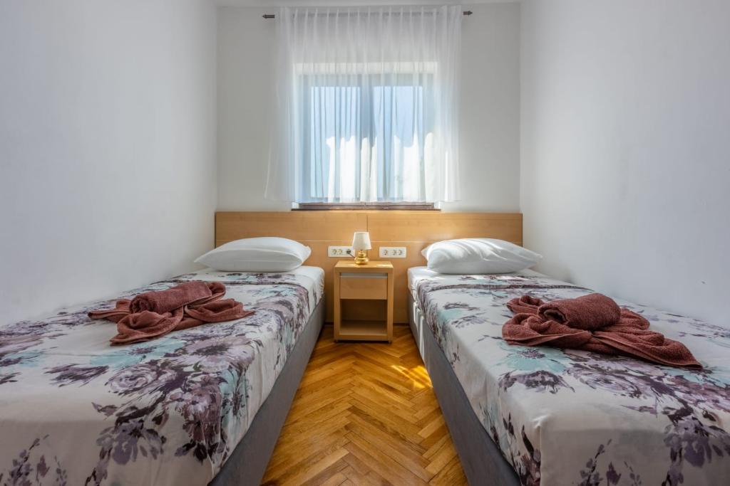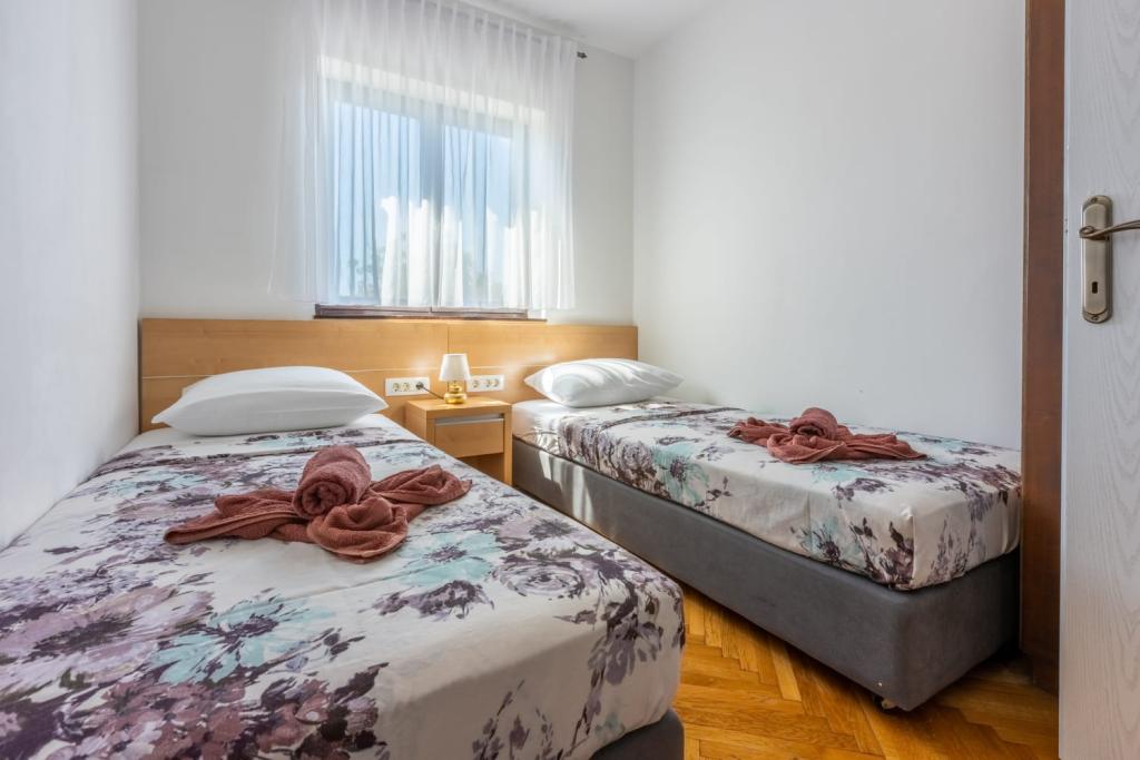 W pełni wyposażony apartament położony w spokojnej dzielnicy Crikvenicy. Obiekt położony jest 10 minut spacerem od centrum i 10 minut spacerem od plaży. Z tarasu apartamentu roztacza się piękny widok na Kvarner i wyspy. Mieszkanie jest oddzielone osobnym wejściem i posiada własny parking.