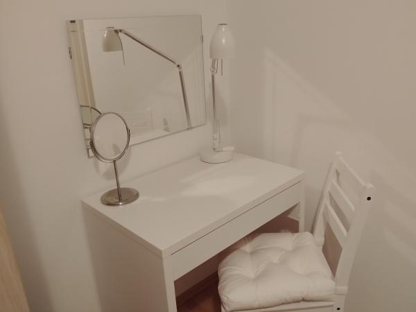 Byliśmy już kilka razy i naprawdę wszystkie zalecenia. Dwa duże pokoje z dwoma łóżkami, schludna nowoczesna łazienka z dużym prysznicem. Masz suszarkę do włosów, kuchenkę mikrofalową, toster, a nawet żelazko. Jeśli komuś pęknie opona od pływania, tak jak ja, ma też mały zestaw do szycia. Wisienką na torcie jest toaletka z lusterkiem. W kuchni masz wszystko, czego potrzebujesz. Jest duża lodówka, a nawet zamrażarka. Piękny taras z zachodem słońca i dużym parasolem, pod którym można wypić poranną kawę na stole. Wszystkie rekomendacje, bardzo uczciwe i świetne.