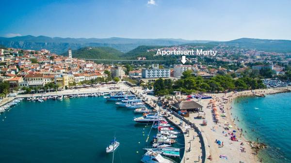 Apartament Marty znajduje się w centrum miasta Crikvenica! Mieszkanie jest 76m2 i znajduje się w budynku mieszkalnym, na 2 piętrze, oraz w mieszkaniach mniejszych niż 50 m znajdują się poczta, bank, sklepy, przystanek autobusowy, plaża. Jest to bardzo ładne i wygodne, a składa się w pełni wyposażona kuchnia, jadalnia, łazienka z WC, WC, pokój dzienny, dwie sypialnie i balkon. Parking jest publiczna.