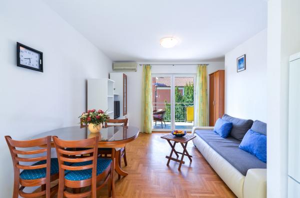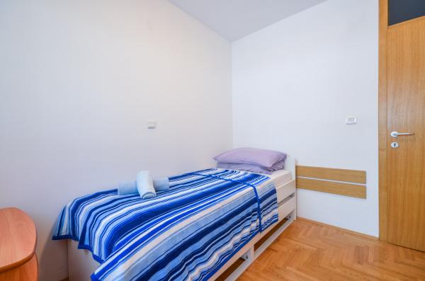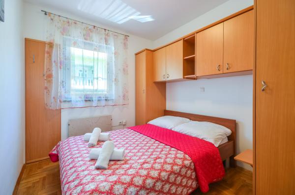 Apartament Valerija znajduje się w zacisznej, brukowanej uliczce, położonej w pierwszym rzędzie od morza, przy słynnej piaszczystej plaży Crikvenica „Crni Mol”. W pobliżu znajduje się kilka kawiarni usytuowanych tuż nad morzem, a także wiele restauracji oferujących szybkie i powolne przekąski, obok apartamentu znajduje się także mały rynek z podstawowymi artykułami spożywczymi i higienicznymi, a także piekarnia, która działa prawie 24 godziny. Centrum miasta oddalone jest o około 600 m lub dziesięć minut relaksujących spacerów nad morzem. Apartament posiada dwie oddzielne sypialnie, jedną z podwójnym łóżkiem i jedną z dwoma pojedynczymi łóżkami. W łazience znajduje się prysznic i umywalka z toaletą. Kuchnia jest w pełni wyposażona w przybory kuchenne, lodówka ma zamrażarkę, jest też kuchenka wodna, piekarnik, kuchenka gazowa, zmywarka i ekspres do kawy. W tym samym pokoju znajduje się jadalnia i rozkładana sofa dla dwóch osób. Na śniadanie lub na relaksującą kolację przy lampce wina znajduje się taras dla 6 osób z widokiem na morze. Klimatyzacja, telewizor i wifi.