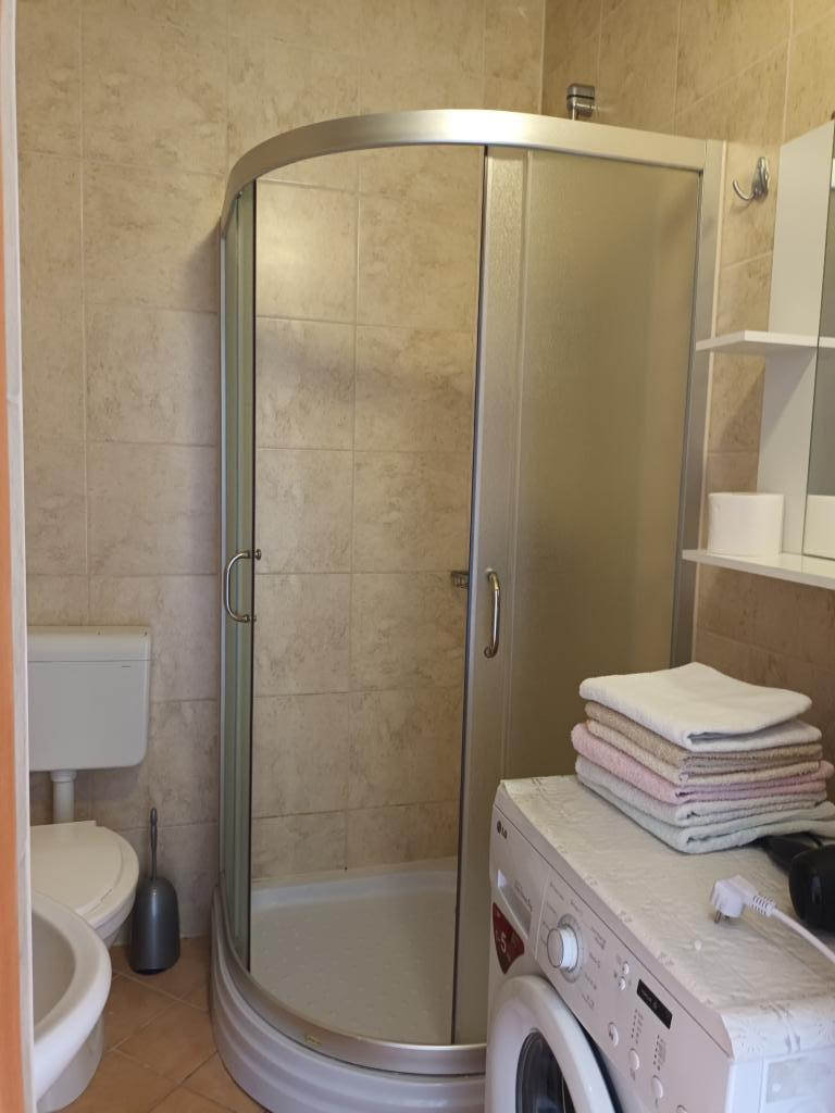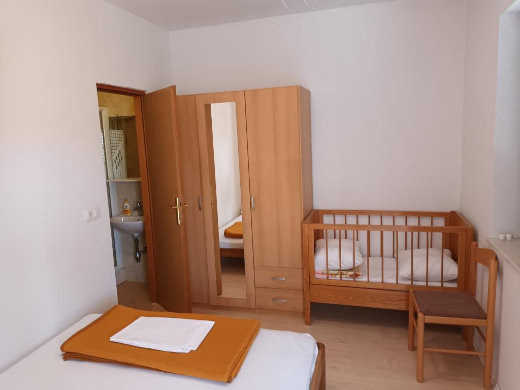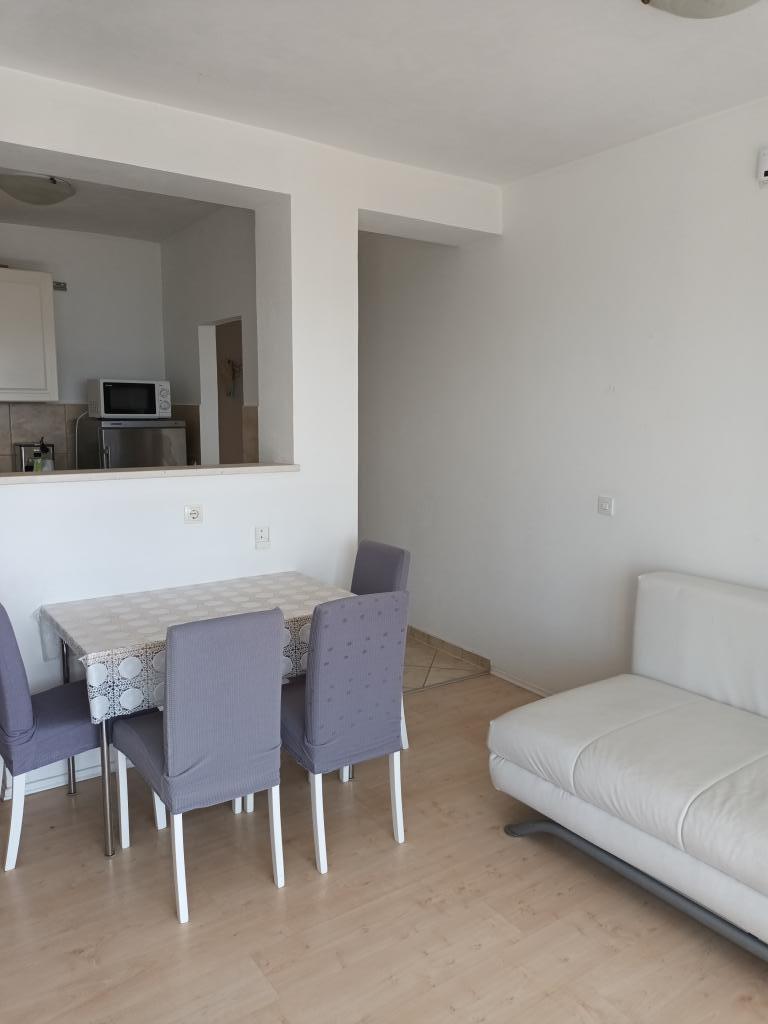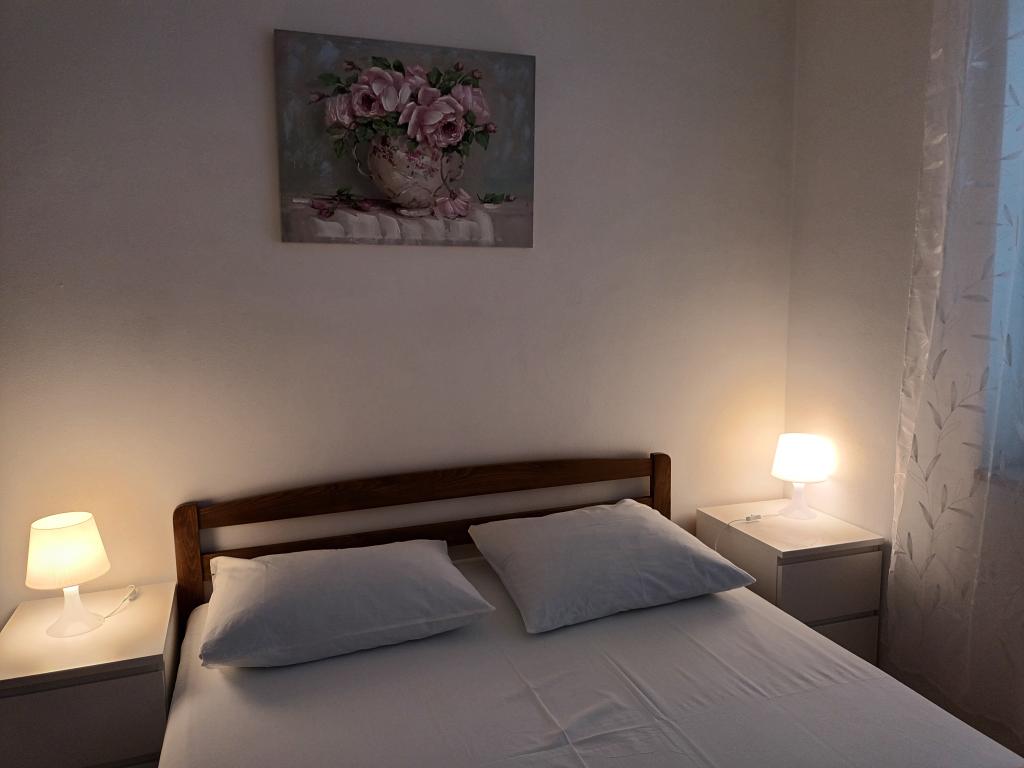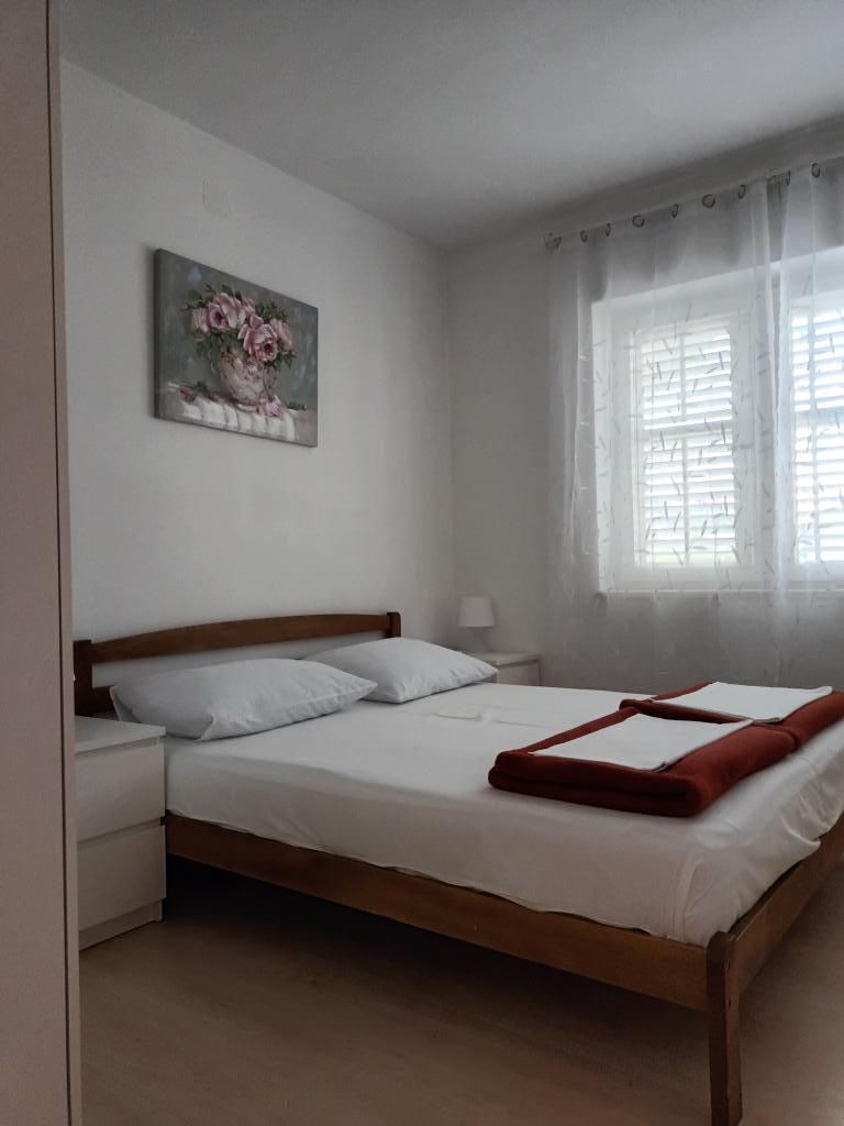 Dwa w pełni wyposażone apartamenty na pierwszym piętrze domu rodzinnego z pięknym widokiem na morze. Jeden (lewy) apartament składa się z dwóch sypialni, dwóch łazienek (każdy pokój ma własną łazienkę), kuchni z salonem i tarasu. Drugi (prawy) apartament składa się z korytarza, sypialni i dużego salonu z kuchnią, a także dwóch łazienek i tarasu. Apartamenty mają własne miejsce parkingowe. Odległość do głównego placu w centrum miasta wynosi 5 minut pieszo, a do plaży w centrum miasta około 7 minut pieszo. Najbliższa plaża w centrum miasta jest kamienista, ozdobiona, zawiera plac zabaw dla dzieci, restauracje i bary i jest odpowiednia dla rodzin z dziećmi. Następnie znajduje się ozdobiona piaszczysta plaża. Każdy apartament ma własne miejsce parkingowe. Goście mają bezpłatne wi-fi na terenie całego obiektu.