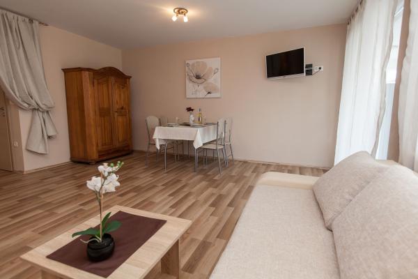 Bardzo miła i sympatyczna gospodyni. Wynajęliśmy dwa apartamenty, oba bardzo czyste iw bardzo dobrym stanie. Chętnie znowu jest naprawdę godna polecenia.