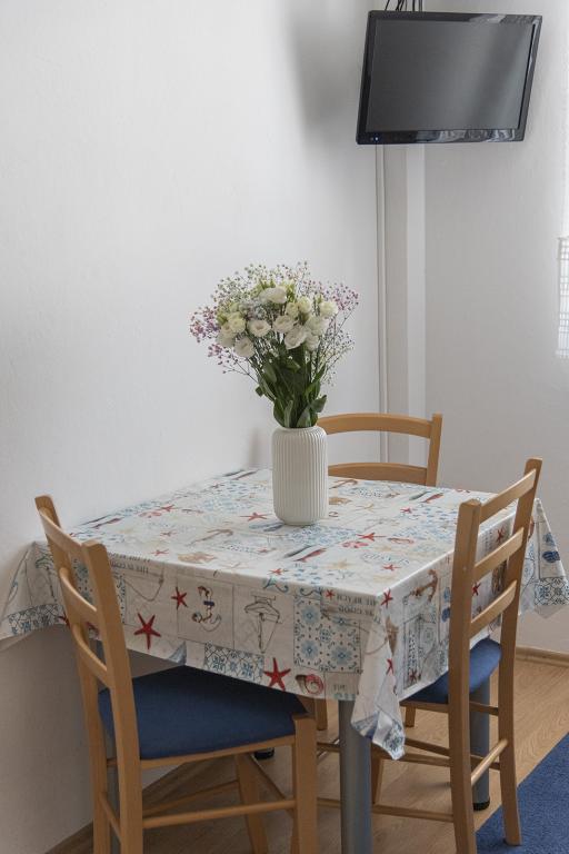Opłata jest wliczone w cenę. Dokument potwierdzający rezerwację przy rezerwacjiApartament znajduje się w spokojnej uliczce i blisko (6-7 minut spacerem) bardzo ładnej plaży z sosnami. Był bardzo czysty (nigdy wcześniej nie widziałem tak czystego apartamentu w Chorwacji). Jest częścią domu apartamentowego z 3 apartamentami gościnnymi (+ jeden, w którym mieszkają właściciele). Byliśmy rodziną z 2 dzieci (8 i 10) i apartament A2+1 (ID: 75057) był dla nas całkowicie ok pod względem przestrzeni, ponieważ jest kilka miejsc wokół domu (duża altana i podwórko), gdzie można jeść, bawić się, rozmawiać, słuchać muzyki. Szczególnie spodoba ci się to, jeśli będziesz tam z inną rodziną lub grupą przyjaciół (masz 2 lub 3 apartamenty). Ponadto masz zmywarkę w kuchni - to coś, co naprawdę docenisz, i pralkę w łazience. Apartament (ID: 75057) wygląda w rzeczywistości lepiej niż na zdjęciach. Cena za pobyt jest bardzo rozsądna. Właściciele są bardzo mili, szybko reagują i dobrze mówią po angielsku.