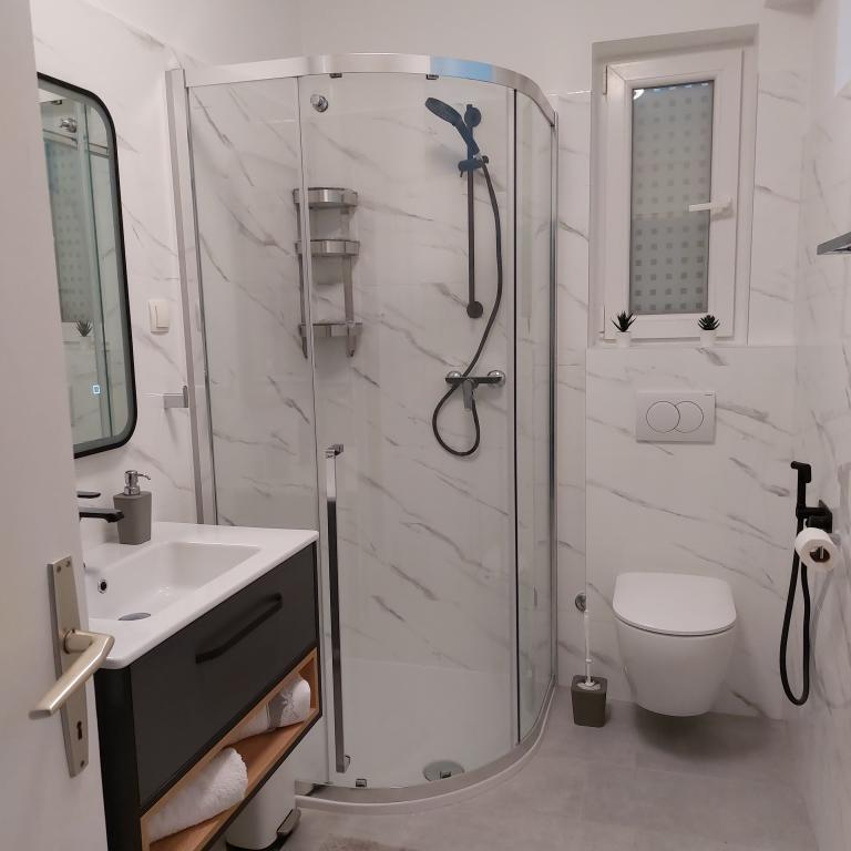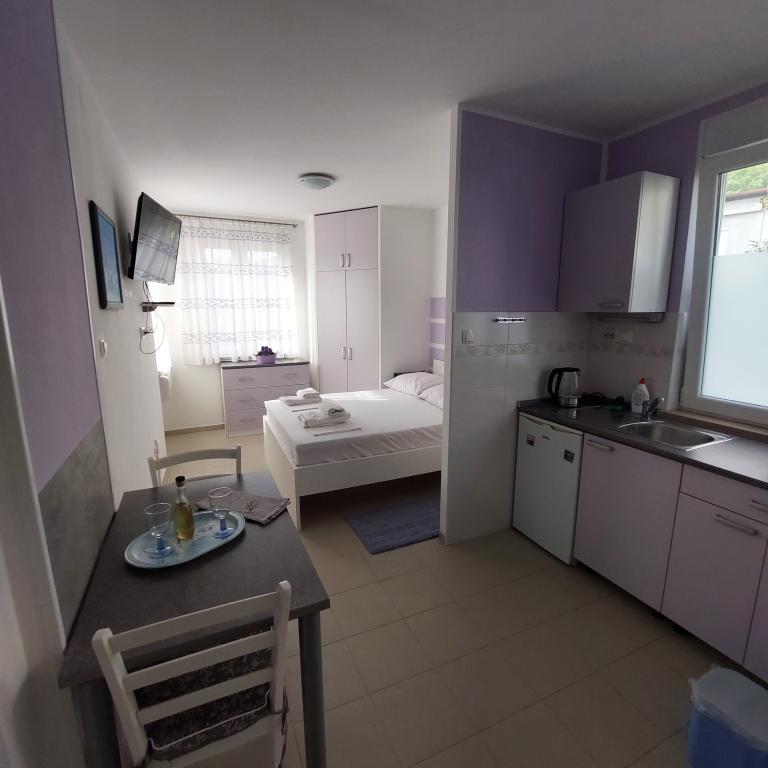 Bardzo dobrze wyposażone apartamenty, zaledwie 50 metrów od morza. Na podwórku znajduje się bezpieczny parking. Obiekt ma możliwość dostawienia dodatkowego łóżeczka dziecięcego na życzenie. Nie ma dostawek dla dorosłych.
