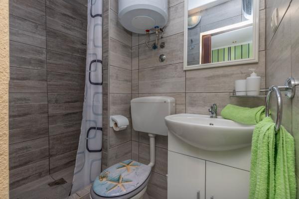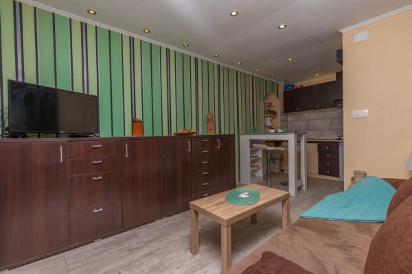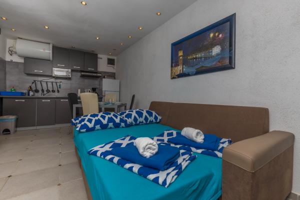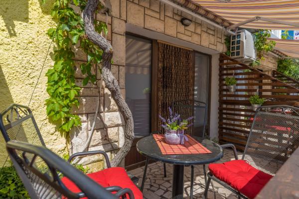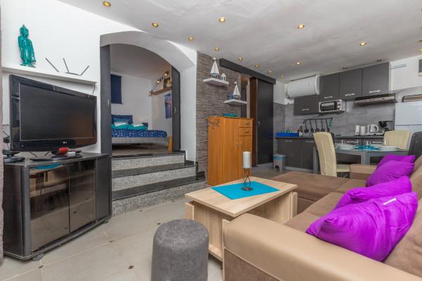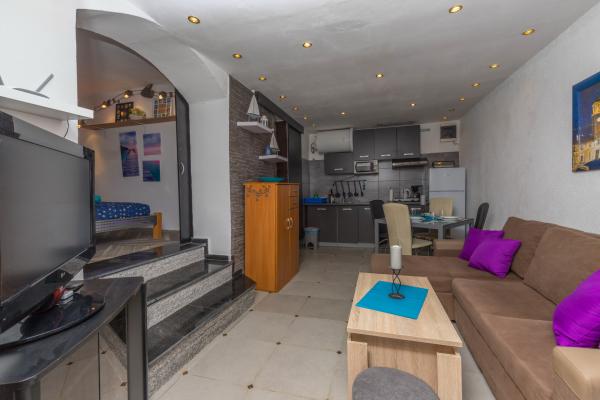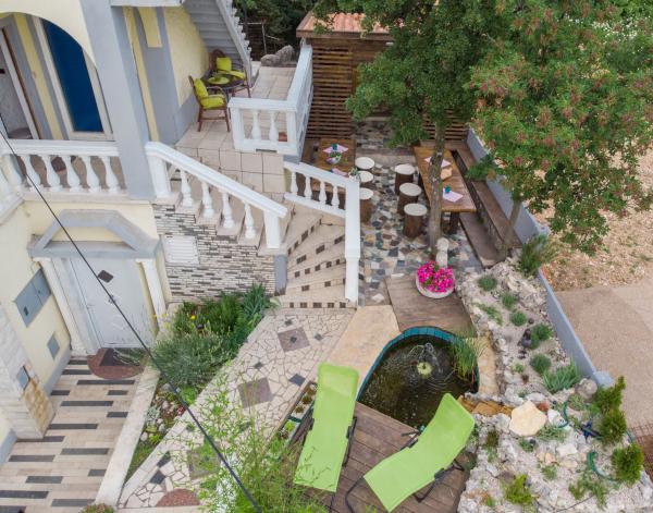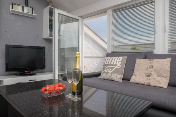 Apartament Katarina ma 80m2 i składa się z salonu, 3 sypialni, kuchni i jadalni, 2 łazienek, tarasu i balkonu. Z mieszkania roztacza się piękny widok na morze i cały Kvarner.