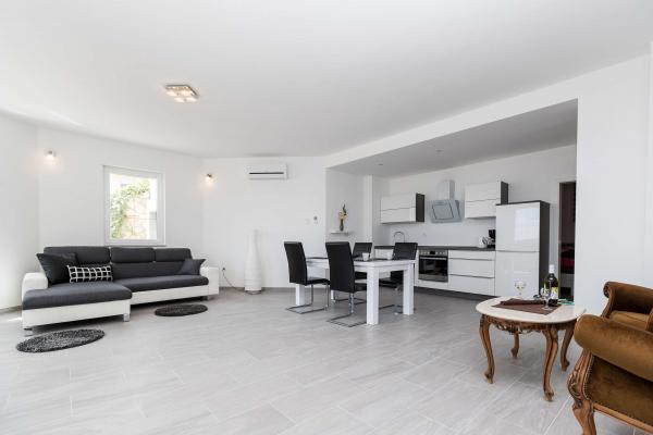 Nowoczesne i luksusowo wyposażone apartamenty z wyjątkowo dużym balkonem/tarasem w spokojnej okolicy Crikvenicy. Dom otoczony jest dużym ogrodem z roślinnością śródziemnomorską. Znajduje się 7 minut spacerem do plaży i 10 minut spacerem do centrum miasta.