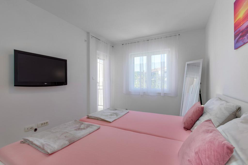 Bardzo ładne i czyste mieszkanie, dokładnie według zdjęć. Przyjemny właściciel, który polecił również pobliską piaszczystą plażę. Duży taras z widokiem na morze. Chociaż mieszkanie znajdowało się tylko około 10 minut spacerem od plaży, ścieżka prowadziła na stromym wzgórzu.