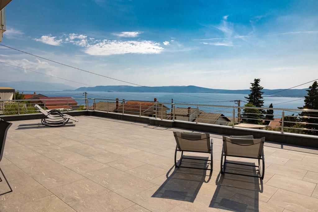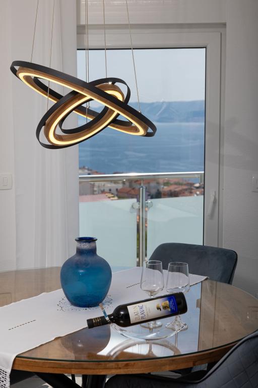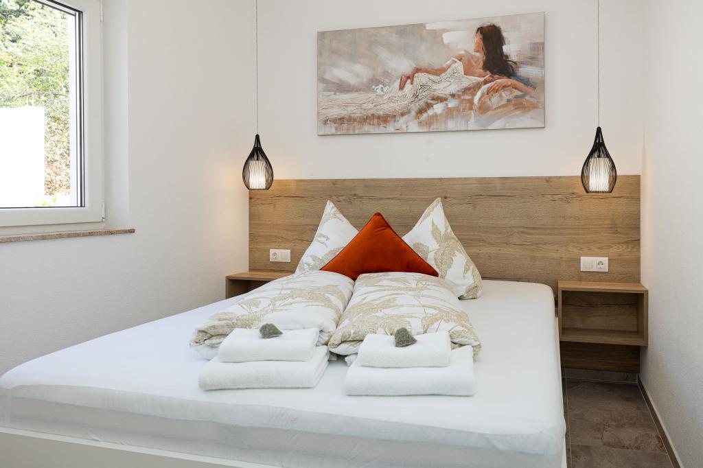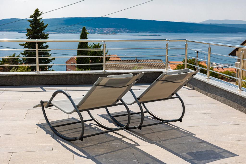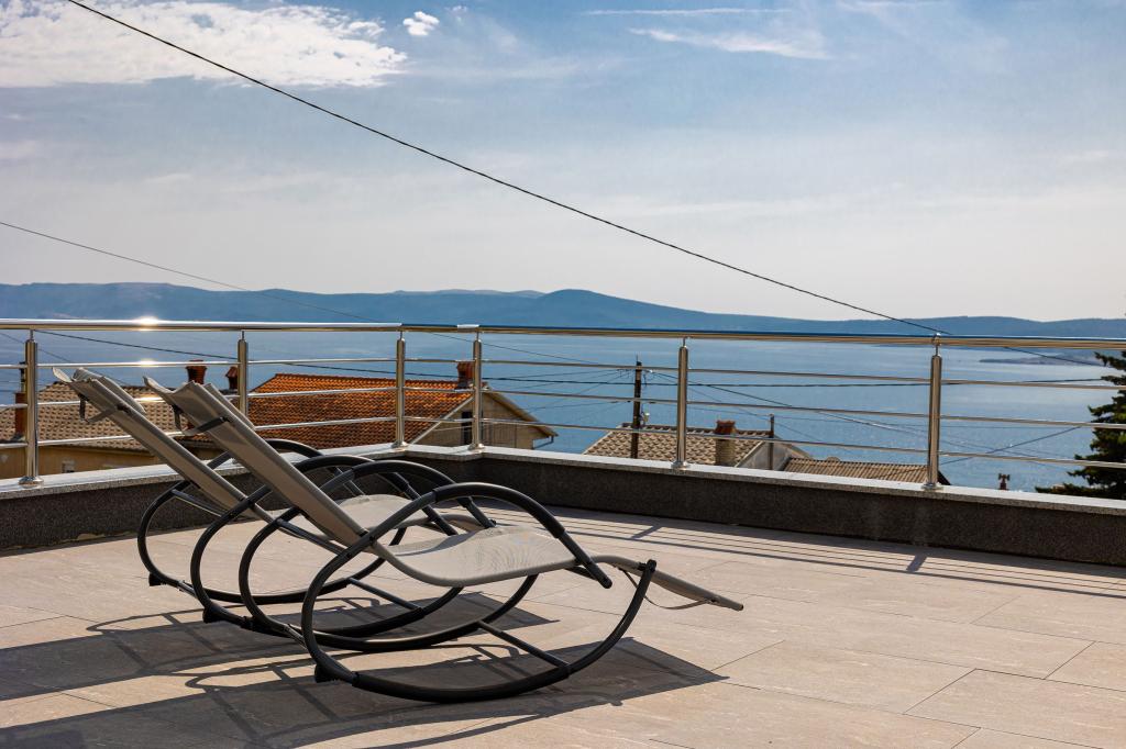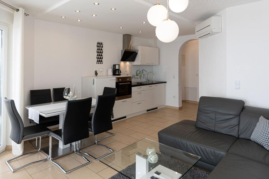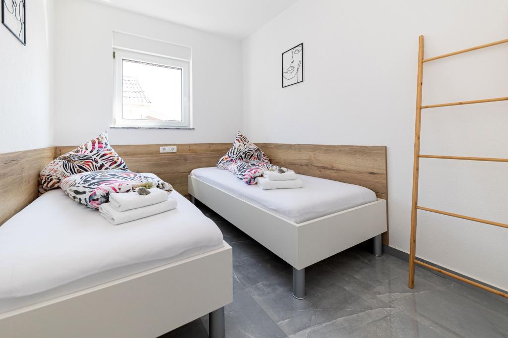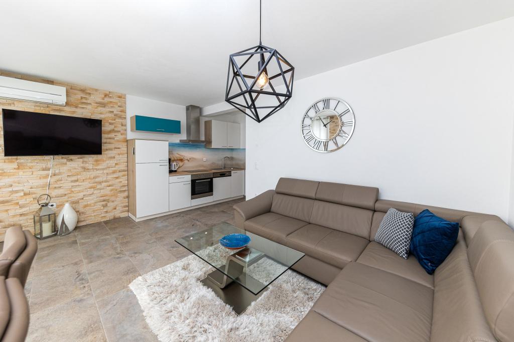 Ten nowoczesny dom z apartamentami to idealny wybór na wakacje i życie nad morzem. Położony w spokojnej okolicy w mieście, oferuje prywatność i spokój, będąc jednocześnie blisko wszystkich niezbędnych udogodnień. Apartamenty są nowoczesne, wyposażone w najnowsze technologie i meble, a duże okna zapewniają piękny widok na morze. Wnętrze jest minimalistyczne, z naciskiem na wygodę i funkcjonalność, zapewniając idealne środowisko do relaksu. Dom znajduje się z dala od hałasu i tłumów, ale z szybkim dostępem do centrum miasta. Za domem znajduje się miejsce do grillowania, idealne na relaksujące spotkania na świeżym powietrzu. Obok domu znajdują się bezpłatne miejsca parkingowe, dzięki czemu parkowanie jest bezstresowe. Ten dom oferuje idealne połączenie nowoczesnego życia, prywatności i naturalnego otoczenia, z widokiem na morze i wszystkimi udogodnieniami, których pragnie każdy gość.