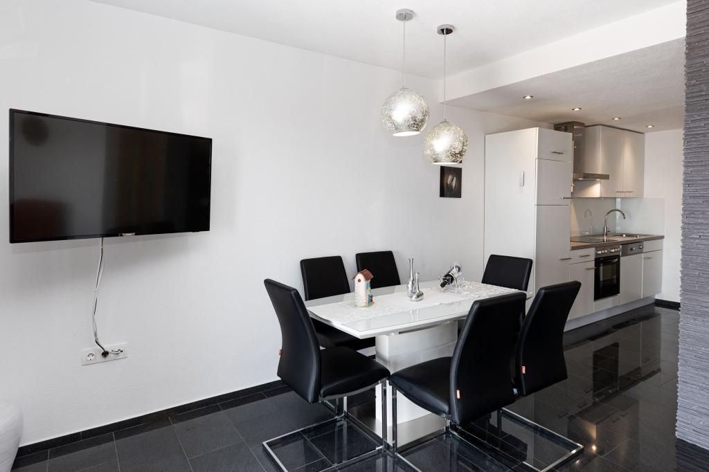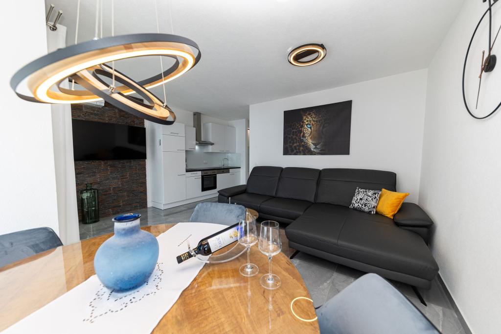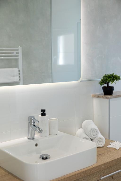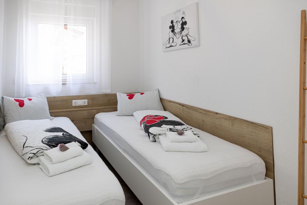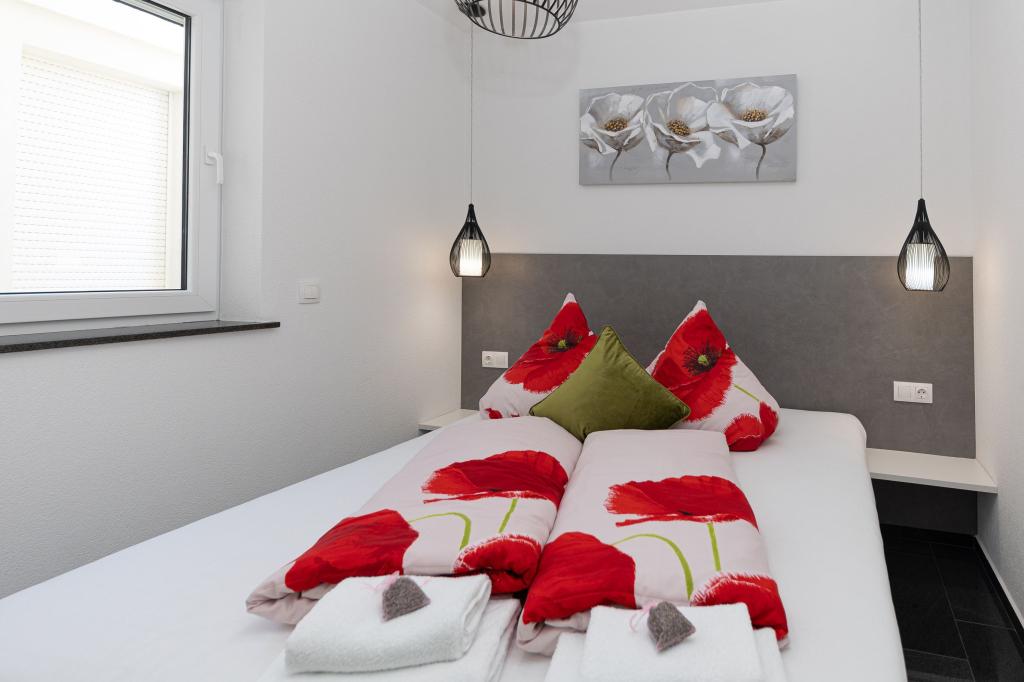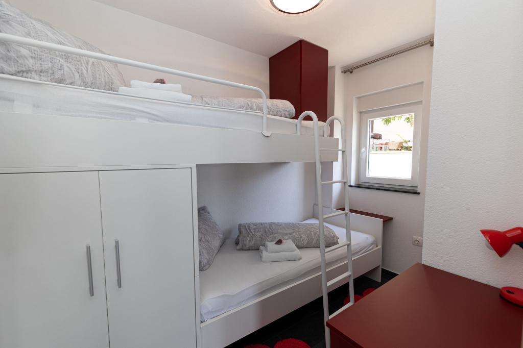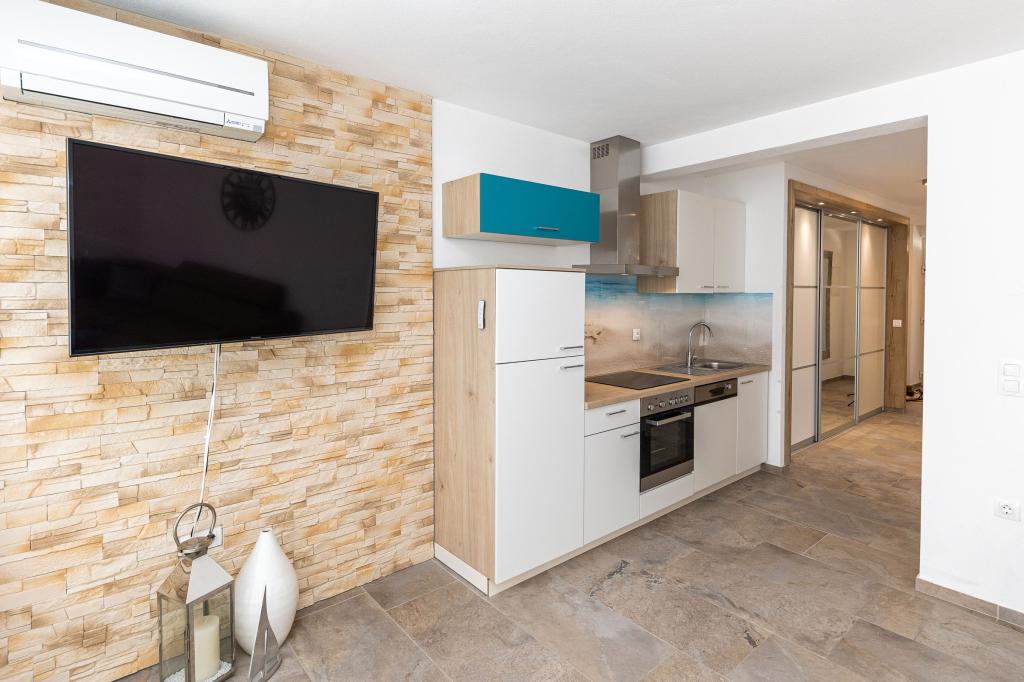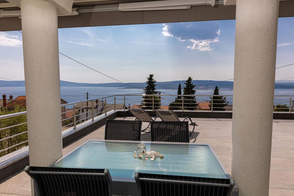 Ten nowoczesny dom z apartamentami to idealny wybór na wakacje i życie nad morzem. Położony w spokojnej okolicy w mieście, oferuje prywatność i spokój, będąc jednocześnie blisko wszystkich niezbędnych udogodnień. Apartamenty są nowoczesne, wyposażone w najnowsze technologie i meble, a duże okna zapewniają piękny widok na morze. Wnętrze jest minimalistyczne, z naciskiem na wygodę i funkcjonalność, zapewniając idealne środowisko do relaksu. Dom znajduje się z dala od hałasu i tłumów, ale z szybkim dostępem do centrum miasta. Za domem znajduje się miejsce do grillowania, idealne na relaksujące spotkania na świeżym powietrzu. Obok domu znajdują się bezpłatne miejsca parkingowe, dzięki czemu parkowanie jest bezstresowe. Ten dom oferuje idealne połączenie nowoczesnego życia, prywatności i naturalnego otoczenia, z widokiem na morze i wszystkimi udogodnieniami, których pragnie każdy gość.