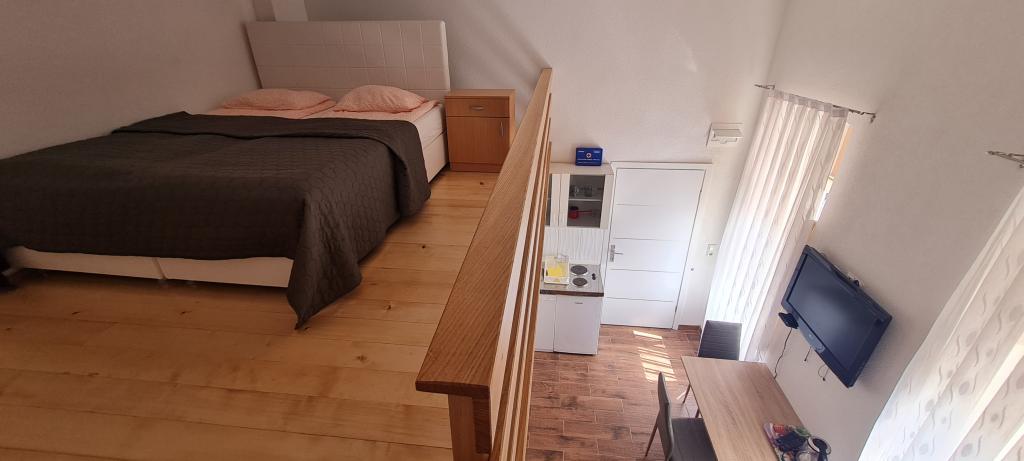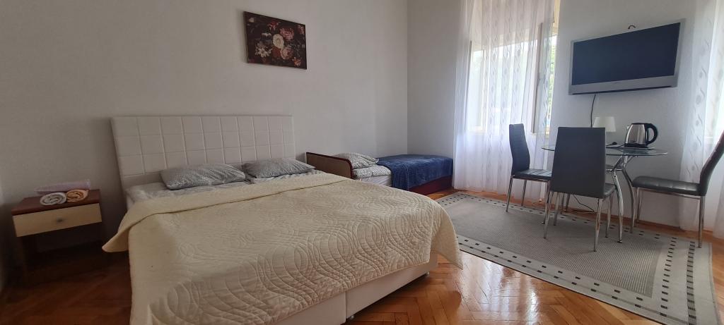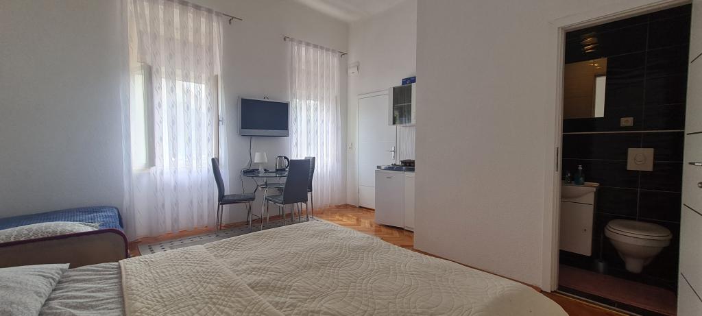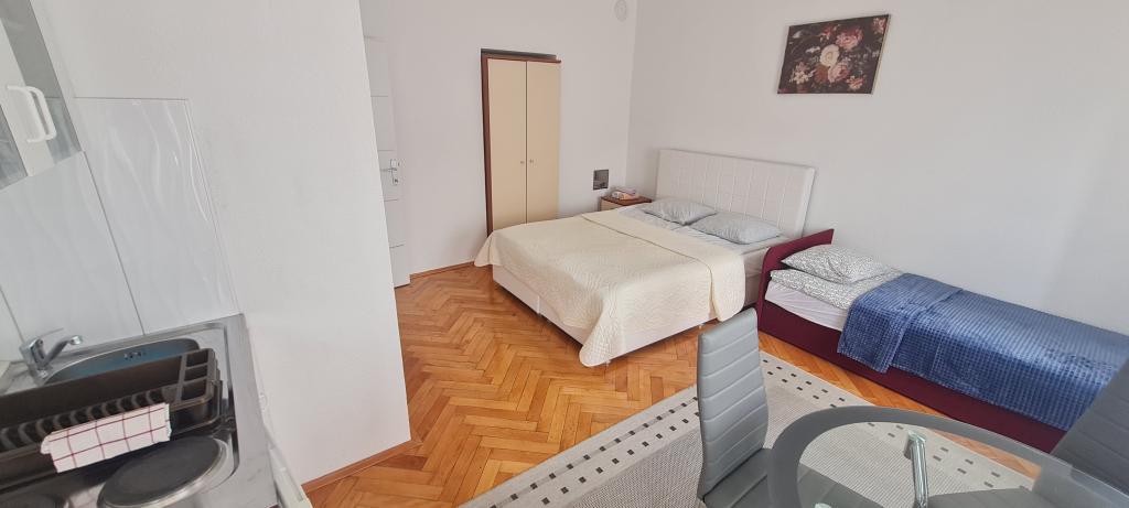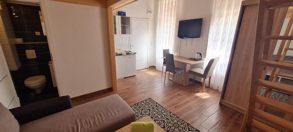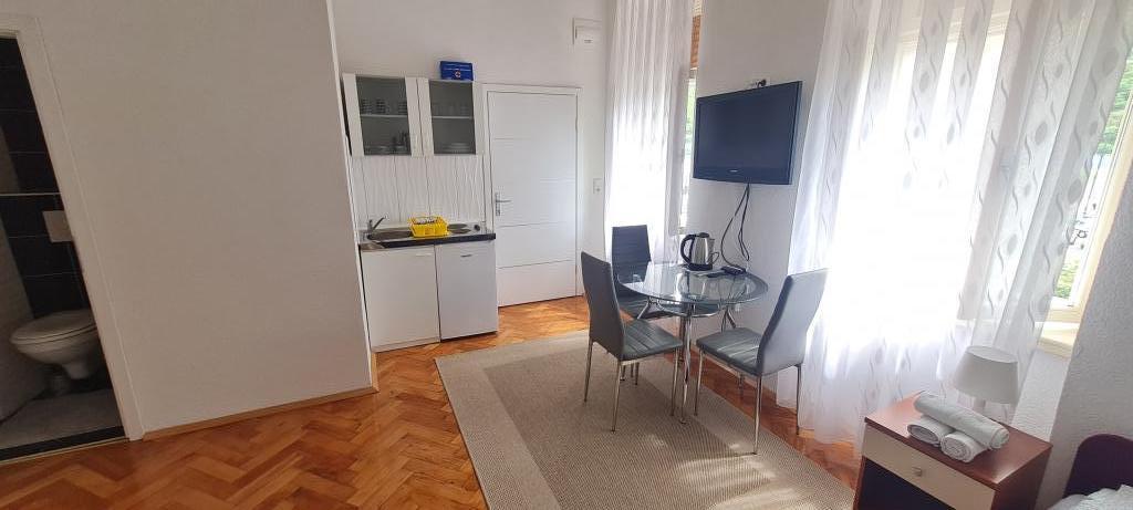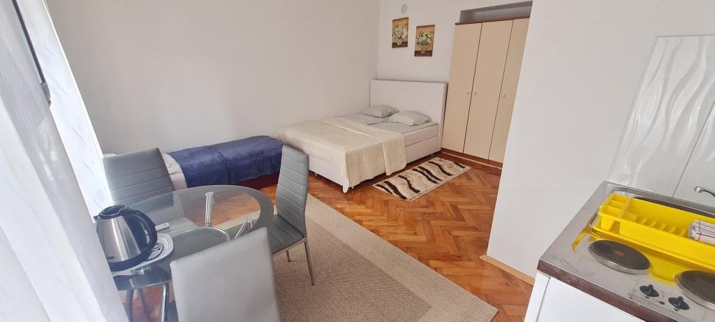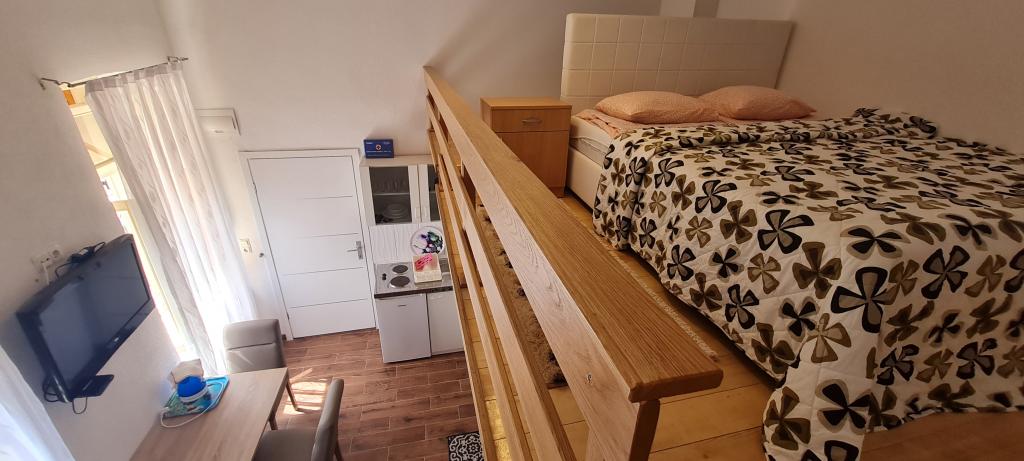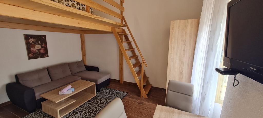 Nowe i nowocześnie wyposażone Apartamenty Sara znajdują się w spokojnej okolicy, zaledwie 200m od centrum Crikvenicy. Dzięki doskonałej lokalizacji wszystkie atrakcje miasta znajdują się w odległości 5-10 minut spacerem (plaże, restauracje, bary, sklepy...). Dwa apartamenty typu studio na parterze budynku rozmieszczone są na dwóch poziomach: w dolnej części znajduje się przestronny salon, kuchnia ze stołem do serwowania posiłków oraz łazienka z prysznicem, natomiast sypialnia z łóżkiem małżeńskim jest znajduje się na galerii. Pozostałe dwa apartamenty typu studio na pierwszym piętrze budynku posiadają po 3 łóżka, kuchnię ze stołem do serwowania posiłków oraz łazienkę z prysznicem. Wszystkie apartamenty wyposażone są w klimatyzację, telewizję satelitarną, bezprzewodowy Internet, natomiast kuchnie wyposażone są w płyty grzejne, lodówki, czajniki oraz wszystkie niezbędne naczynia do przygotowywania i serwowania posiłków.