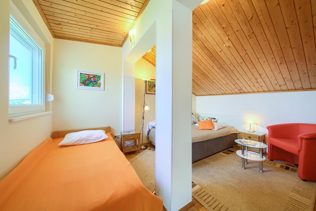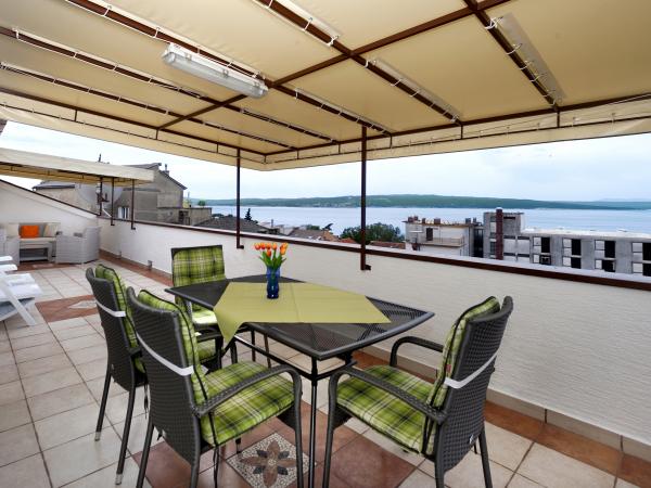 Ogrodzona willa w centrum Crikvenicy, drugi rząd do morza, 3 minuty spacerem do plaży i promenady, 5 minut do centrum. Zagospodarowany teren, ogród z grillem i paleniskiem dla gości oraz zamykany parking. Dom posiada 4 komfortowe apartamenty z widokiem na morze, miejskie ogrody i wyspę Krk. Kategoryzacja trzy- i czterogwiazdkowa. 3 apartamenty dla 4-5 osób i 1 apartament dla 2-3 osób. 4 gwiazdki. Wszystkie APARTAMENTY są komfortowo wyposażone i posiadają własny taras lub balkon. , TV SAT, Internet bezprzewodowy, klimatyzacja, sejf na pieniądze i rzeczy wartościowe, umeblowana kuchnia ze wszystkimi sprzętami AGD oraz możliwość korzystania z ogrodowego grilla. Dni otwarte od 1.05.-30.09. każdego roku. Okres zimowy: na specjalne życzenie dostępne są apartamenty dla 4 osób i apartamenty dla 2 osób z centralnym ogrzewaniem, balkonami i widokiem na miejskie ogrody i wyspę Krk.