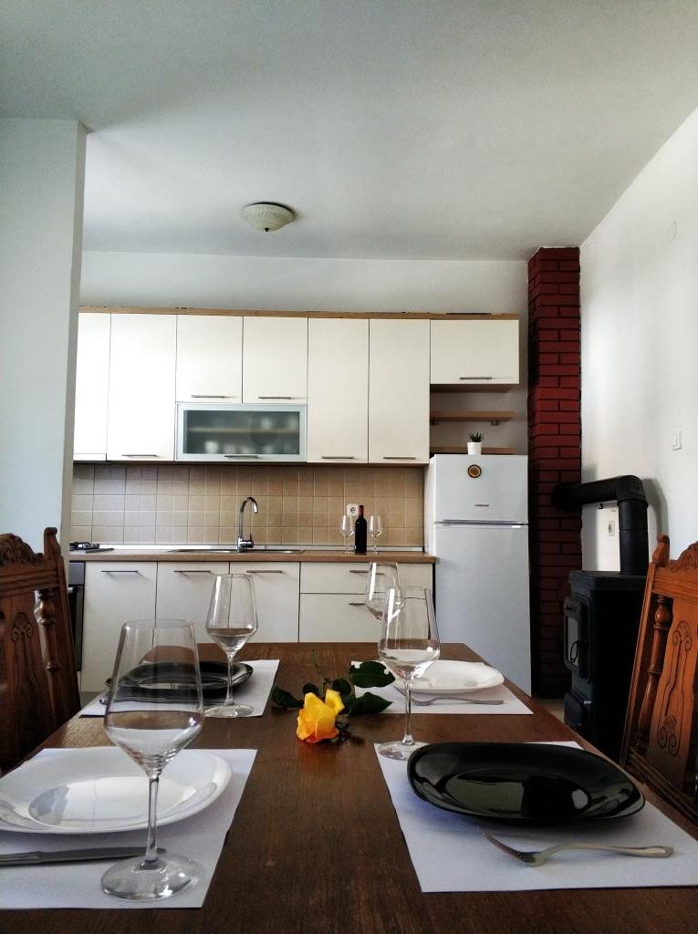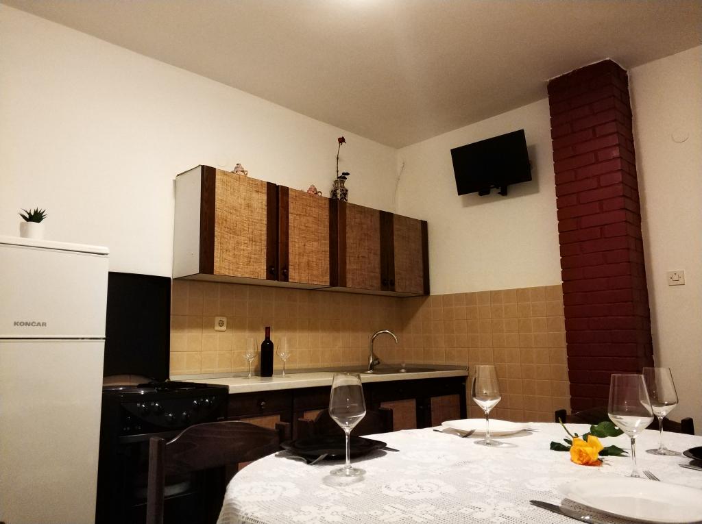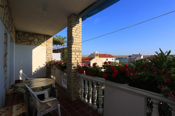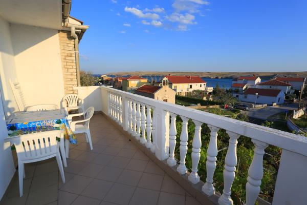 Apartament znajduje się w małej miejscowości Dinjiška na wyspie Pag. Dinjiska znajduje się 15 km od miasta. Apartament znajduje się w odległości 50 metrów od morza. Oferuje on bezpłatny parking, korzystanie z grilla. Mieszkanie ma trzy sypialnie, dwie łazienki i duży balkon. Klimatyzacja będą pobierane dodatkowe 5 euro.