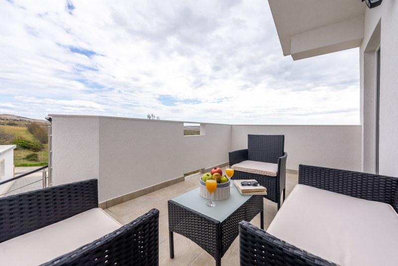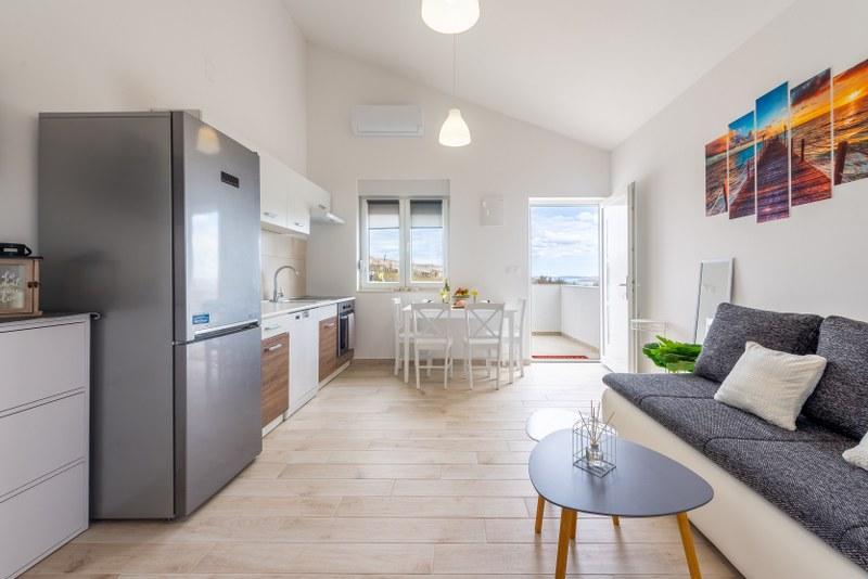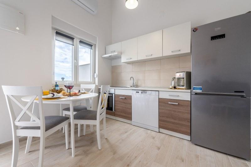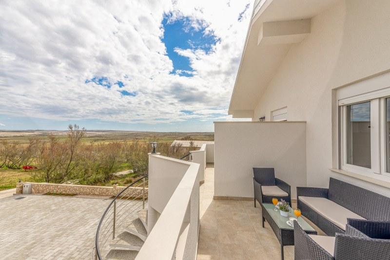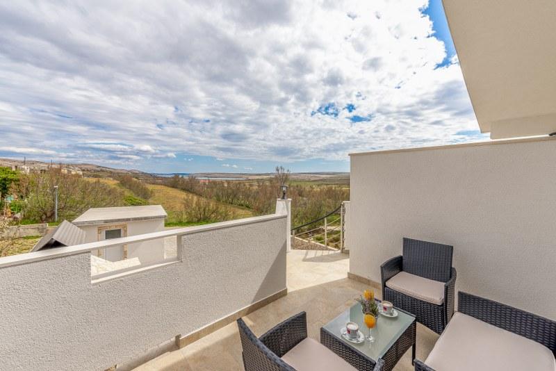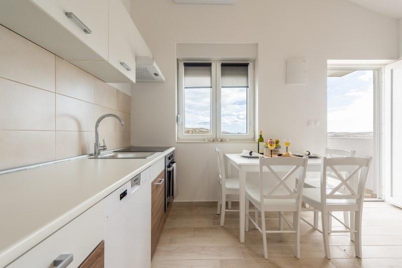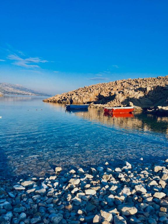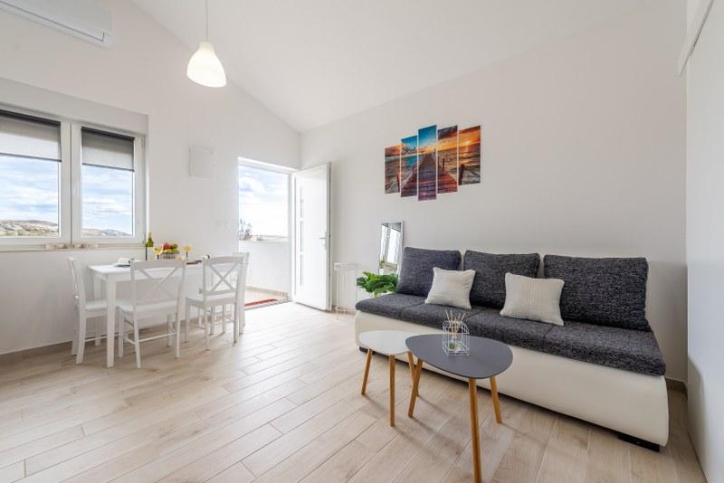 Nowoczesne nowo urządzone apartamenty (2) w spokojnym miejscu Stara Vas na wyspie Pag. To miejsce jest 3 km od plaży i sklepów (Dinjiška). Idealnie nadaje się do wypoczynku na tarasie, w ciszy z widokiem na morze. Jeśli szukasz wytchnienia od tłumów i hałasu, to dobrze trafiłeś. Jeśli szukasz rozrywki lub interesują Cię zabytki i historia, miasto Pag oddalone jest o 11 kilometrów. Obiekty są całkowicie udekorowane; składają się z salonu, kuchni, sypialni, łazienki i tarasu. W salonie znajduje się sofa z możliwością rozciągania, smart TV, sejf, klimatyzacja. Kuchnia ze zmywarką, płytą ceramiczną, piekarnikiem, dużą lodówką, ekspresem przelewowym, czajnikiem. Sypialnia z podwójnym łóżkiem, dwiema szafkami nocnymi i dwiema lampkami nocnymi, szafą i dodatkową komodą. Wyposażona łazienka z pralką (do dyspozycji żelazko i suszarka do włosów). Tetrace z meblami ogrodowymi. - Dostępne Wi-Fi - Darmowy parking - Możliwość korzystania z zewnętrznego ogniska (grill)