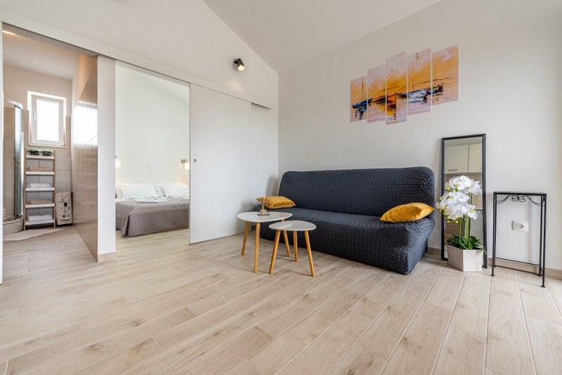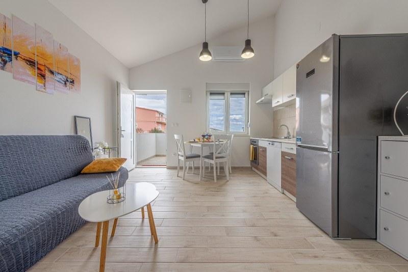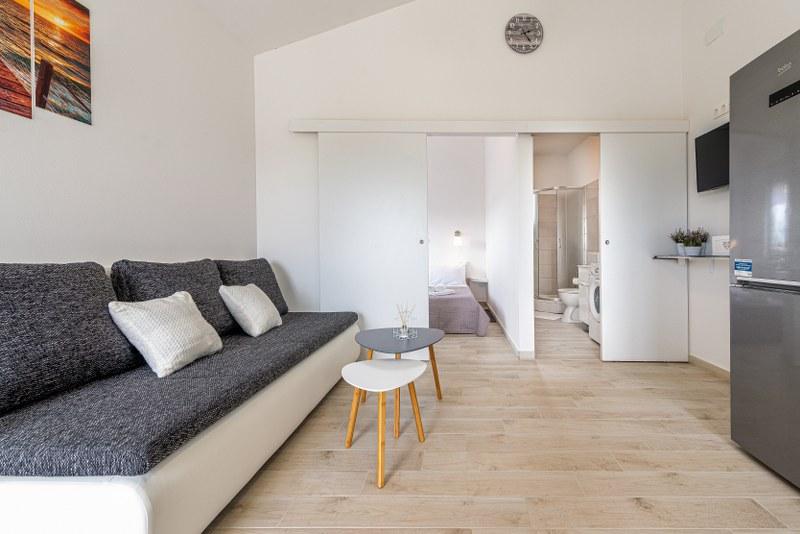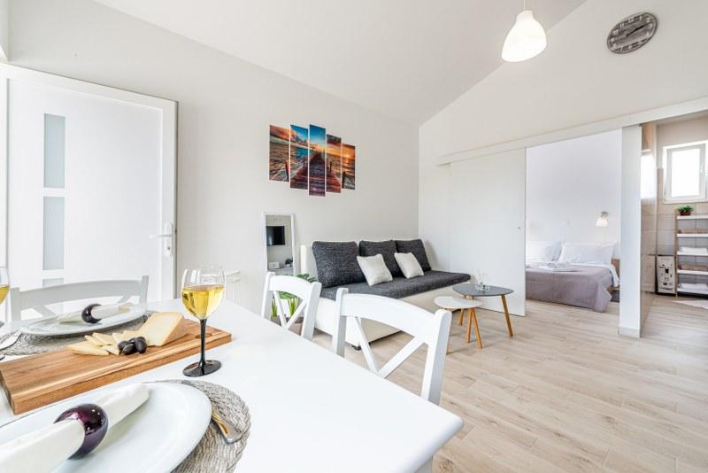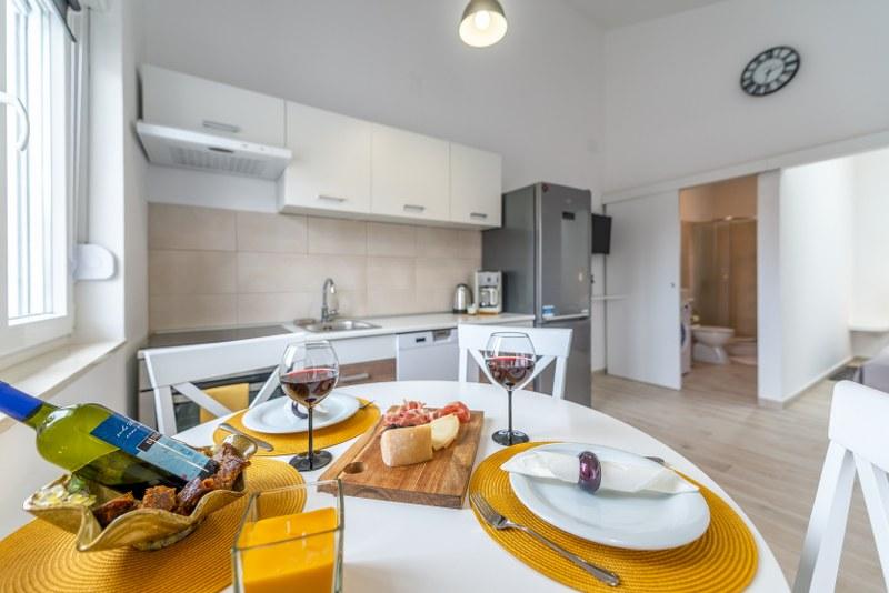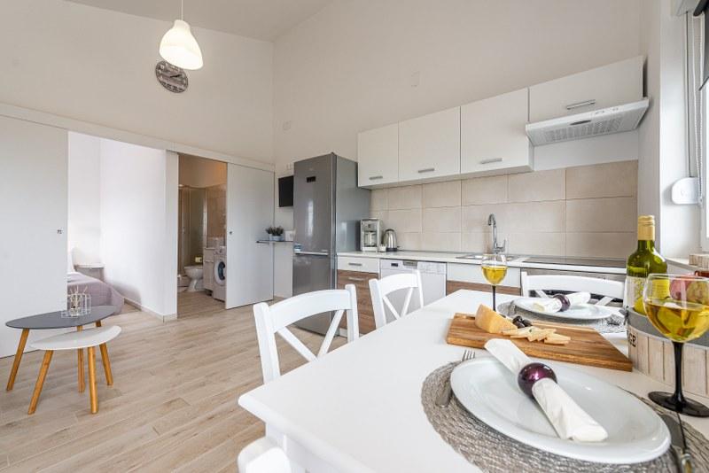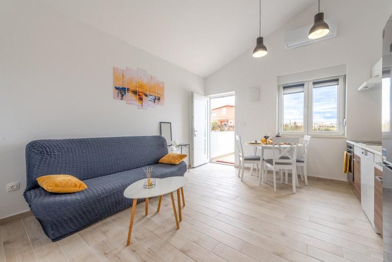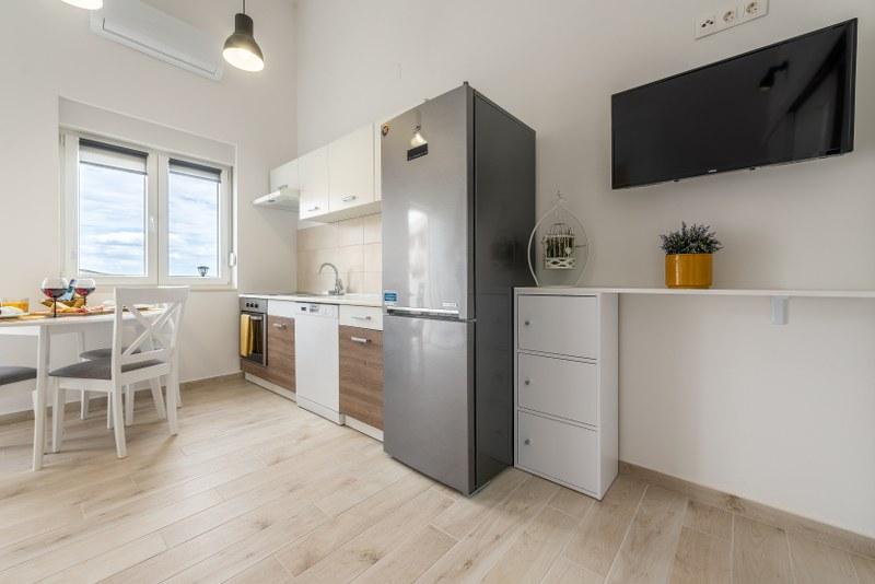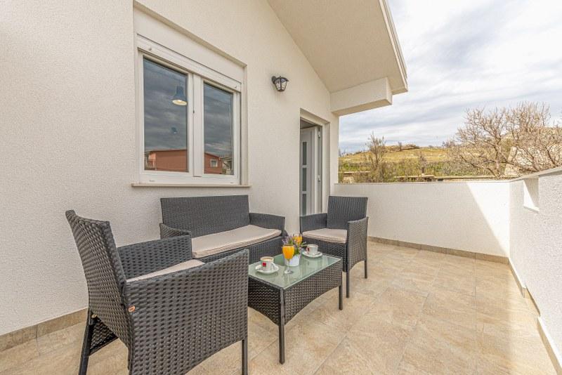 Nowoczesne nowo urządzone apartamenty (2) w spokojnym miejscu Stara Vas na wyspie Pag. To miejsce jest 3 km od plaży i sklepów (Dinjiška). Idealnie nadaje się do wypoczynku na tarasie, w ciszy z widokiem na morze. Jeśli szukasz wytchnienia od tłumów i hałasu, to dobrze trafiłeś. Jeśli szukasz rozrywki lub interesują Cię zabytki i historia, miasto Pag oddalone jest o 11 kilometrów. Obiekty są całkowicie udekorowane; składają się z salonu, kuchni, sypialni, łazienki i tarasu. W salonie znajduje się sofa z możliwością rozciągania, smart TV, sejf, klimatyzacja. Kuchnia ze zmywarką, płytą ceramiczną, piekarnikiem, dużą lodówką, ekspresem przelewowym, czajnikiem. Sypialnia z podwójnym łóżkiem, dwiema szafkami nocnymi i dwiema lampkami nocnymi, szafą i dodatkową komodą. Wyposażona łazienka z pralką (do dyspozycji żelazko i suszarka do włosów). Tetrace z meblami ogrodowymi. - Dostępne Wi-Fi - Darmowy parking - Możliwość korzystania z zewnętrznego ogniska (grill)