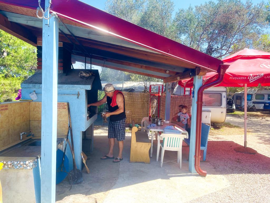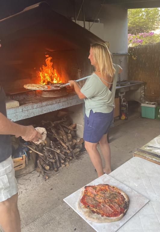W cenę wliczony jest powitalny drink. Możliwość pobytu w obozie za domem, który oferuje również noclegi w przyczepach. W obozie znajduje się kominek pod baldachimem ze stołem, przy którym można również rozkoszować się aromaterapią stuletnich sosen i oliwek w przyjemnej atmosferze śpiewu i lokalnych ryb.