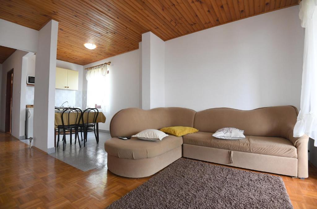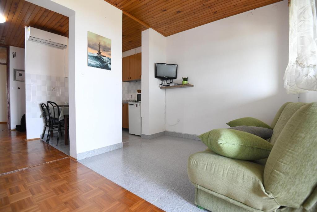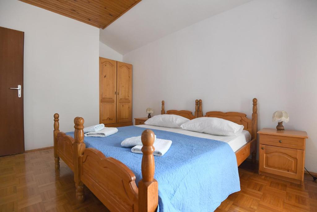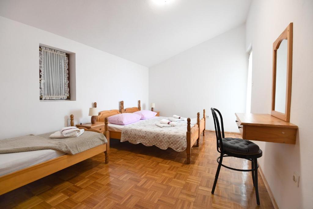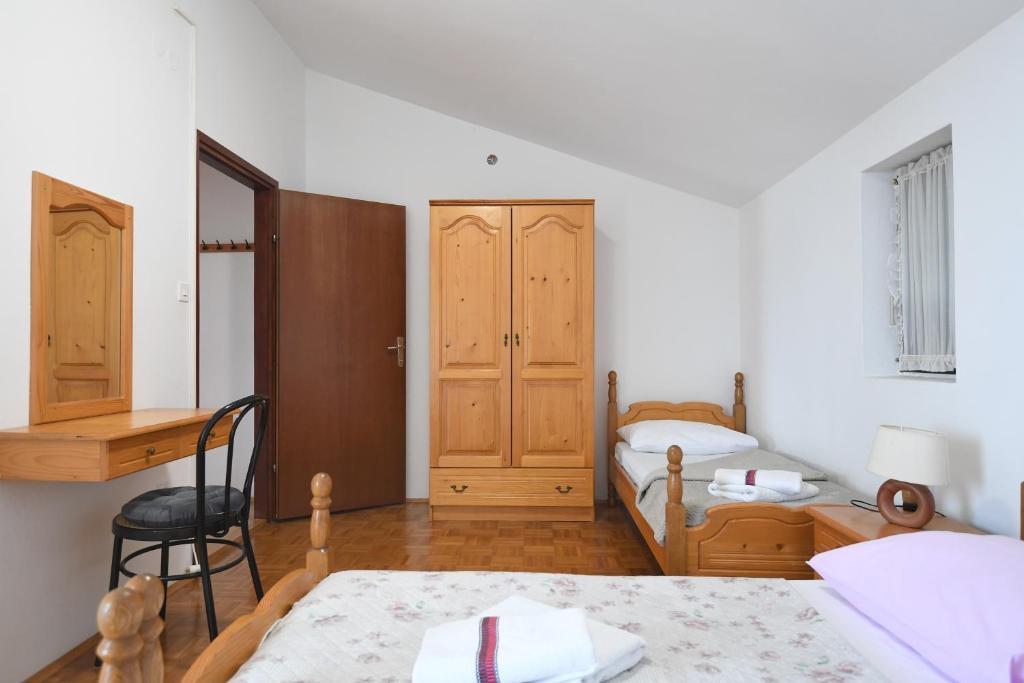 Apartamenty Erna to kompleks 3 apartamentów w domu. Apartamenty są wygodne i wyposażone w klimatyzację. Apartament A1 znajduje się na parterze budynku, składa się z 3 sypialni, kuchni, toalety, jadalni i salonu. Kuchnia jest w pełni wyposażona. Pokoje wyposażone są w podwójne łóżka, jak pokazano na zdjęciach. Apartamenty A2 i A3 zlokalizowane są na drugim piętrze budynku. Każdy apartament posiada dwie sypialnie, a każda sypialnia posiada własny balkon. Kuchnie w tych apartamentach są w pełni wyposażone, a z balkonu roztacza się piękny widok na morze. W budynku znajduje się domek przystosowany do grillowania i spędzania czasu wolnego. Parking jest zapewniony, miejsca parkingowe znajdują się w naturalnym cieniu. We wsi znajdują się dwie plaże, piaszczysta i żwirowa, również widoczne na zdjęciach. We wsi znajduje się kościół, restauracja i dwie kawiarnie. W mieście, jak i na całej wyspie, odbywają się liczne wydarzenia, które czynią naszą wyspę bardziej znaczącą, zapewniając naszym gościom prawdziwe doświadczenie morza.