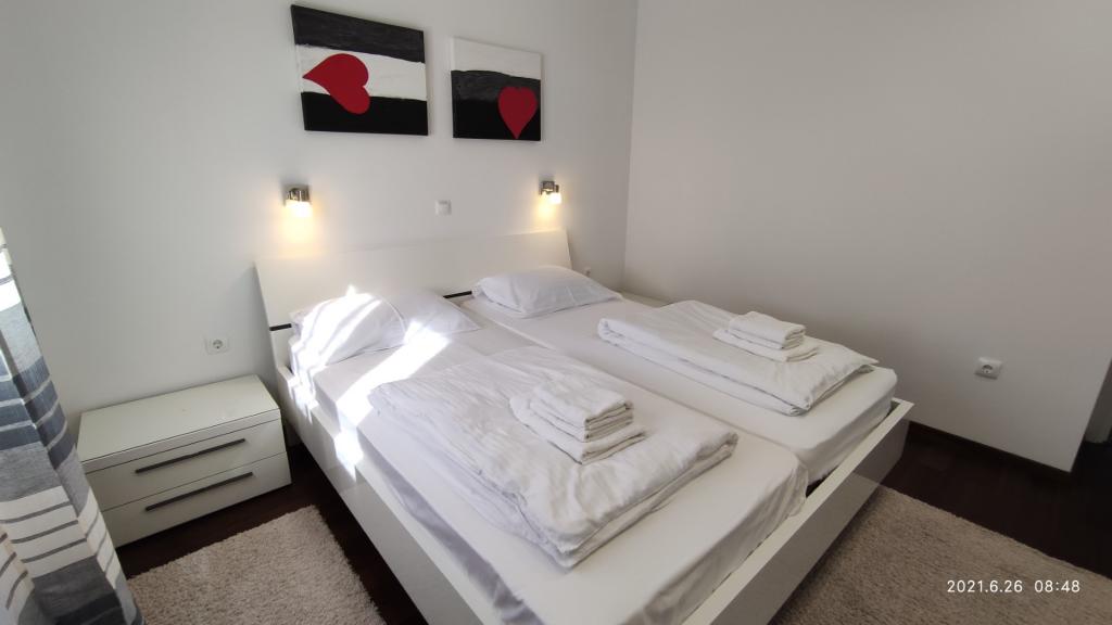 Villa Vanda znajduje się w małej miejscowości Dobropoljana na wyspie Pašman. Dom otoczony jest drzewami oliwnymi i śródziemnomorską roślinnością i znajduje się zaledwie 80 m od morza. Na wakacje oferujemy Państwu 3 apartamenty: - Vanda 1 (maks. 4 osoby. ) - Na parterze, z dużym tarasem, pergolą i widokiem na morze - Vanda 4 (maks. 4 osoby. ) - Na 2. piętrze piętro, balkon z pięknym panoramicznym widokiem na morze - Vanda 5 (max. 4 osoby.) - Na 2 piętrze balkon z pięknym panoramicznym widokiem na morze Internet (Wi-Fi) jest dostępny bezpłatnie i można korzystać z dużego grilla w oddzielnym domu. Przed domem dostępny jest parking. Odległość: plaża kamienista 80 m, plaża piaszczysta 600 m; Centrum Dobropoljana 600 m, sklep 600 m, restauracja 500 m