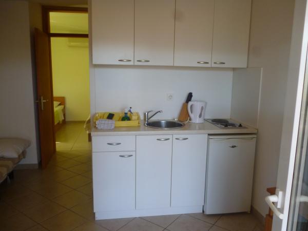 W pełni umeblowane mieszkanie w spokojnej części Karin zatoce, w otoczeniu lasu sosnowego. Obiekt znajduje się w ślepej ulicy (bez ruchu), po schodach w dół do plaży. Każdy apartament posiada własny taras, cztery nad pięknym morzem.