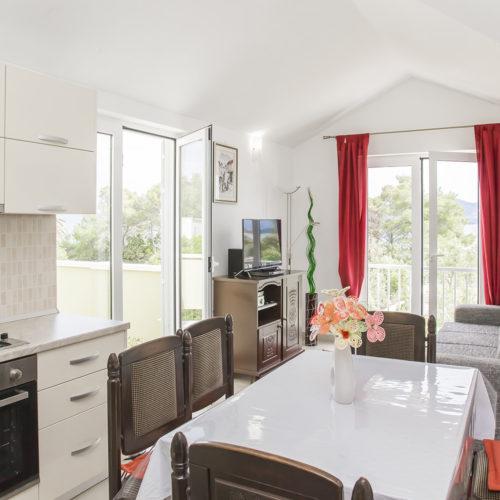 Apartament i lokalizacja super. Prywatna plaża parę kroków od apartamentu. Wyposażenie super łącznie z parasolami na balkonie i na plaży oraz leżaki. Wszystko co potrzeba w kuchni jest. W wyposażeniu grill dla każdego apartamentu. Duży parking.Najlepszy apartament jaki wynajmowaliśmy w Chorwacji. Super właścicielka. Z całego serca polecam
