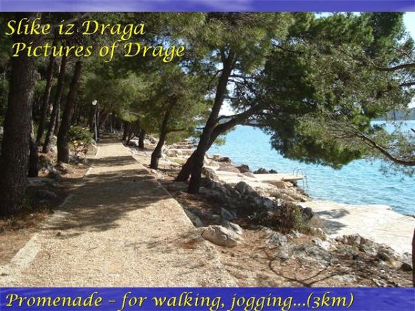 Całkowicie i nowocześnie wyposażone apartamenty w spokojnym miejscu Dolaške Drage, położone trzeci rząd od morza. Obiekt znajduje się 5 minut spacerem od morza. Z tarasu roztacza się piękny widok do morza. Nad morzem znajduje się las sosnowy z promenadą. W pobliżu parku narodowego Kornati, parku narodowego Krka i parku przyrody Vranjsko jezero. Nad jeziorem Vranjsko znajduje się 50-kilometrowy szlak rowerowy, który jest bardzo interesujący dla miłośników jazdy na rowerze. W bezpośrednim sąsiedztwie (5 km) znajduje się największy park rozrywki Fun Park Biograd.