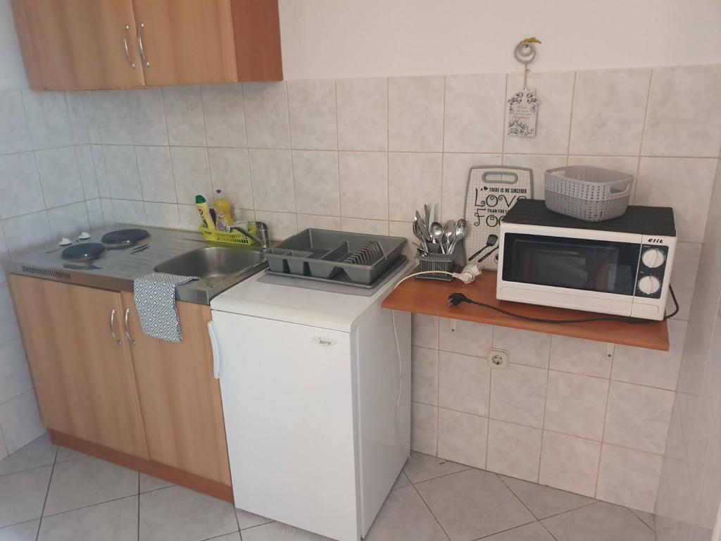 Apartamenty Marko to w pełni wyposażone apartamenty dla czterech osób. Apartamenty składają się z sypialni z łóżkiem małżeńskim i szafą, łazienki z prysznicem, pokoju dziennego z łóżkiem dla dwóch osób i TV. Kuchnia wyposażona jest we wszystkie naczynia, kuchenkę mikrofalową, czajnik, lodówkę. Żelazko i deska do prasowania. Mieszkanie posiada klimatyzację, Wi-Fi, a każdy gość ma własne miejsce parkingowe. Do plaży jest około 900 m. Z jednej strony jest piękne jezioro Vrana, z drugiej morze. Sklep znajduje się 10m od apartamentu. Wizyta w wodospadach Krka, wycieczka do Kornati lub wizyta w Zadarze i organach morskich i wiele więcej sprawią, że Twój pobyt będzie niezapomniany. Gospodarz ma swoje wino, które każdy gość otrzymuje na powitanie. W obiekcie znajduje się również grill.