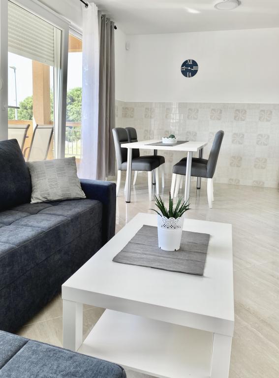 Apartamenty Stella to w pełni i nowocześnie wyposażone apartamenty w spokojnej części miasta. W bezpośrednim sąsiedztwie znajduje się sklep, piekarnia, plaża, restauracje oraz autostrada. Bliskość jeziora Vransko jest idealna dla miłośników wędkarstwa, jazdy na rowerze i ptaków. W okolicy znajdują się dwa inne chorwackie parki narodowe (Krka i Kornati). Każdy apartament składa się z: salonu (z rozkładaną sofą), kuchni z jadalnią, 1 sypialni z podwójnym łóżkiem, 1 sypialni z 2 łóżkami pojedynczymi, łazienki z WC oraz balkonu. W kuchni dostępne są: czajnik, ekspres do kawy, mikrofalówka i zwykły piekarnik, 2 strefy gotowania, lodówka oraz wszystkie niezbędne naczynia i przybory kuchenne. W łazience znajduje się pralka i suszarka do włosów. Na życzenie do apartamentu dodajemy karmnik, łóżeczko dziecięce (z pościelą) oraz barierkę do łóżka. Te dodatki są zawarte w cenie podstawowej, wystarczy sprawdzić dostępność podczas rezerwacji.