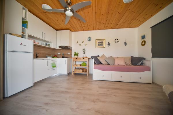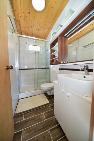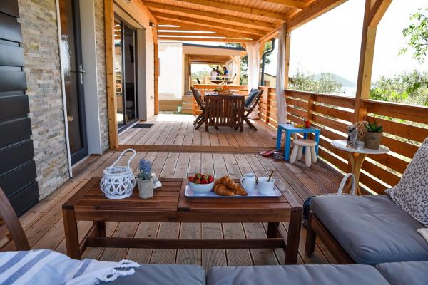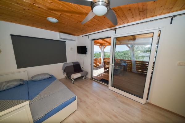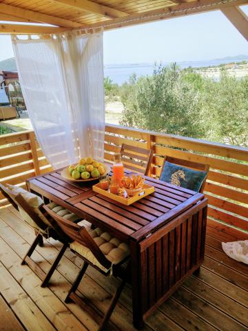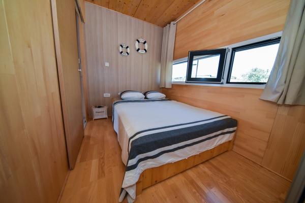 Nowy, nowocześnie wyposażony domek mobilny w cichym obozie rodzinnym w pobliżu Pakostane. Dom przeznaczony jest dla maksymalnie 5 osób, idealny dla rodzin z dziećmi, ponieważ w bezpośrednim sąsiedztwie znajduje się plac zabaw dla dzieci, a spokojna żwirowa plaża znajduje się zaledwie 50 metrów od hotelu. Dom ma 1 sypialnię, łazienkę z prysznicem i przestronny salon z kuchnią. Kuchnia wyposażona jest w kuchenkę gazową, serwetkę, lodówkę z zamrażarką oraz akcesoria i naczynia do przygotowywania żywności i serwowania posiłków i napojów. Salon wyposażony jest w telewizor LED i klimatyzację, wygodną sofę i fotel, które są przekształcane w przestronne łóżka dla 3 osób. Salon jest oddzielony szklaną ścianą od przestronnego, całkowicie zadaszonego tarasu. Z tarasu roztacza się widok na morze i zachód słońca. Wyposażono go w stół dla 6 osób i wygodny zestaw wypoczynkowy. Ręczniki i pościel są dostępne. Miejsce parkingowe znajduje się przy domu i jest bezpłatne. Na kempingu można bezpłatnie korzystać z WiFi.