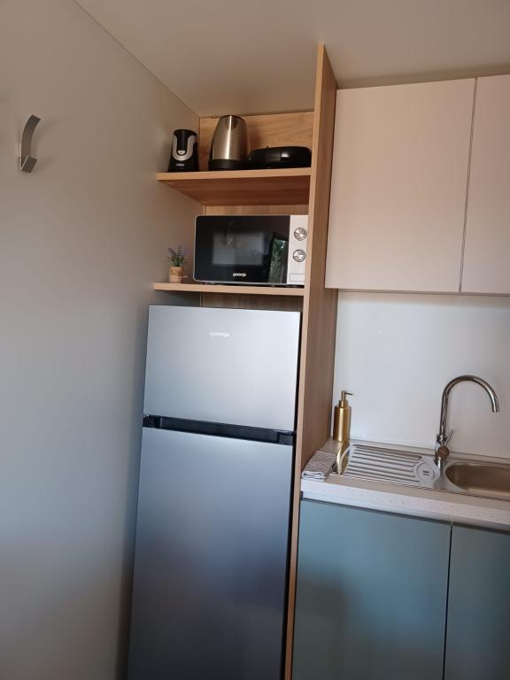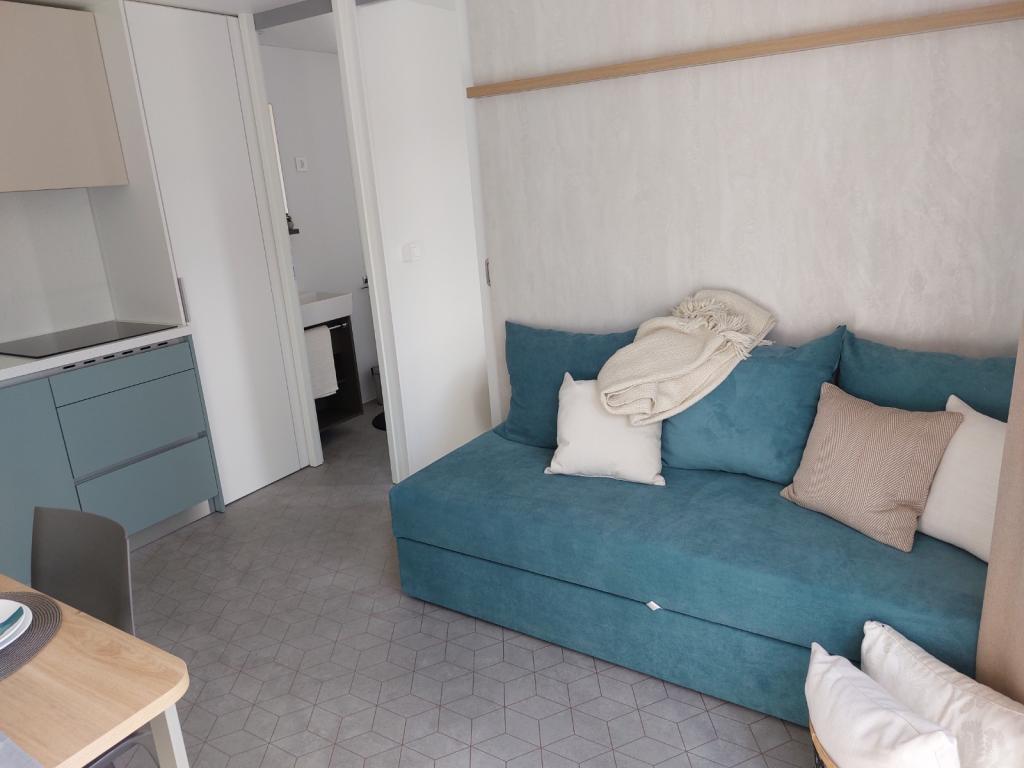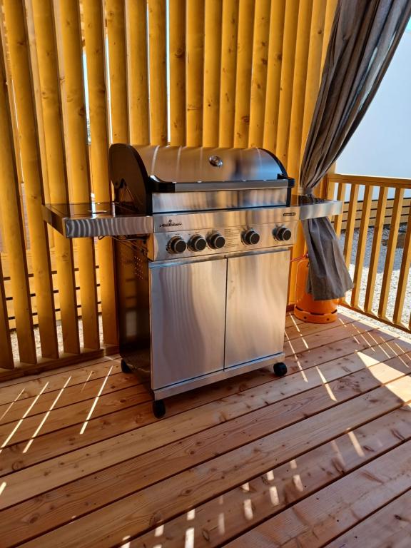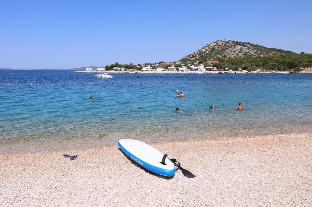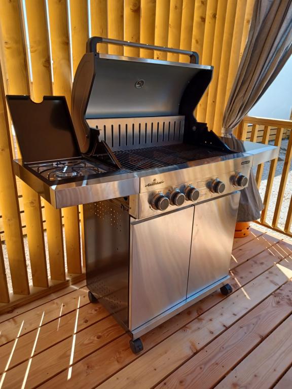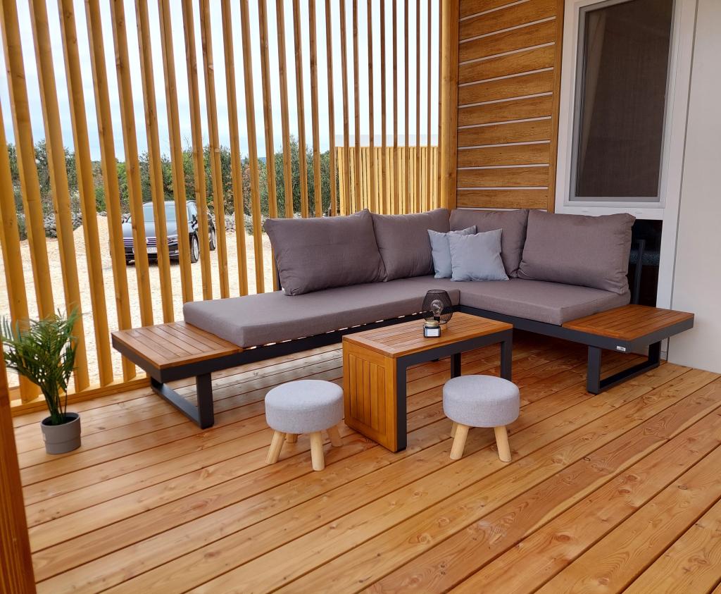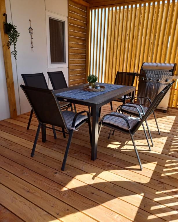 Blue Wave to nowy dom, którego wynajem rozpoczyna się 1 kwietnia 2023 roku. Dom jest w pełni wyposażony i ma nowoczesny design, 32 m2 pięknie wykorzystanej przestrzeni. ZAWARTOŚĆ: W pełni wyposażona kuchnia (kuchenka mikrofalowa, kuchenka, płyta indukcyjna, toster, zmywarka, mikser stojący, blender, kompletne naczynia i mały falownik) 1 Sypialnia z podwójnym łóżkiem 160x200 1 Sypialnia z 2 łóżkami 90x200 Salon z trzyosobową sofą, wymiary spania 140x200 Część jadalna 2 Łazienki w pełni wyposażone (prysznic, WC, ręczniki, suszarka do włosów) Taras w pełni wyposażony (meble do wypoczynku, stół jadalny, grill...) Prysznic solarny Miejsce parkingowe Karmnik Łóżeczko turystyczne dla maluszka