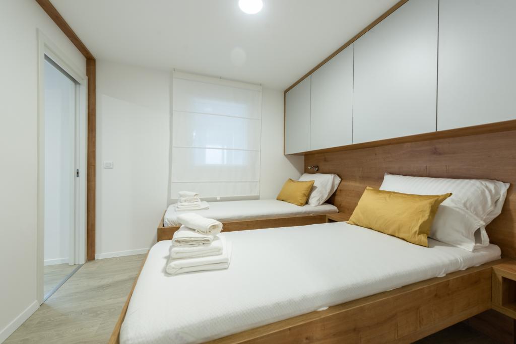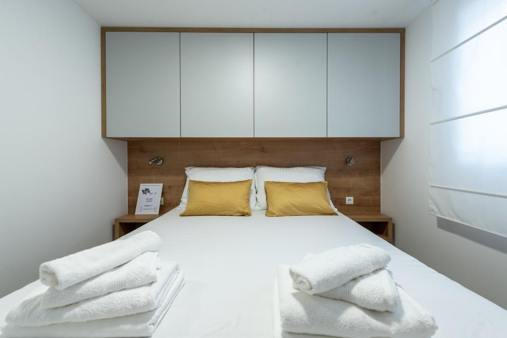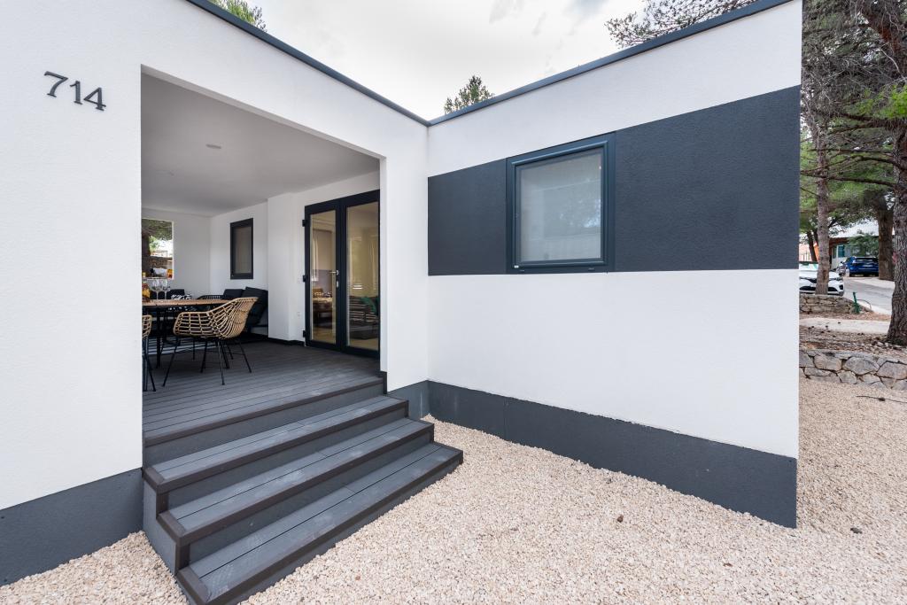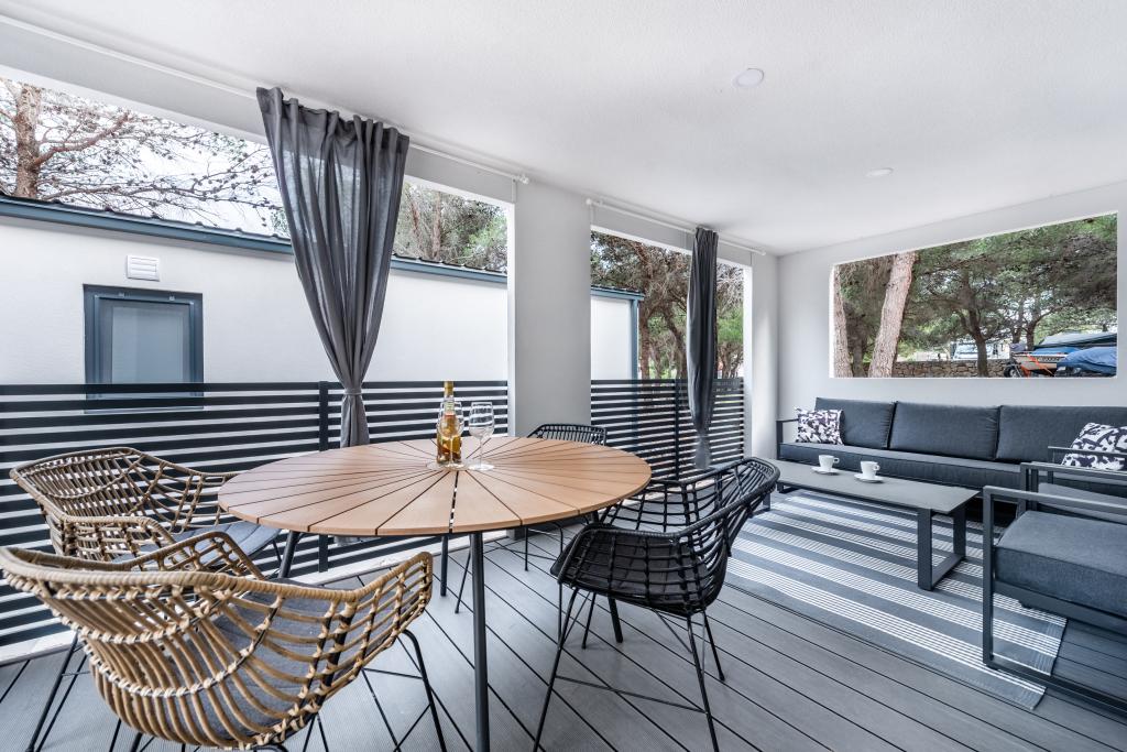 Luksusowy, nowocześnie wyposażony dom mobilny z pięknym tarasem, który zadowoli każdy gust. Dom mobilny położony jest na terenie kempingu „Oaza mira” w doskonałej lokalizacji, w zacienionym lesie sosnowym, zaledwie 50 metrów od pięknej plaży. W bezpośrednim sąsiedztwie znajduje się duży basen oraz liczne obiekty sportowe (kort tenisowy, boisko do gry w bule, plac zabaw dla dzieci). Na terenie obozu znajduje się restauracja, supermarket i duży węzeł sanitarny z pralnią. W każdym domu znajdują się dwie sypialnie: pokój z łóżkiem podwójnym i pokój z dwoma pojedynczymi łóżkami. W salonie narożnik może służyć jako dodatkowe łóżko dla dwóch osób. Dom składa się z dużego salonu, kuchni ze sprzętem AGD, kuchenką i lodówką, a także jednej/dwóch łazienek z prysznicem, umywalką i toaletą. Dom mobilny posiada ogródek z tarasem i zadaszeniem.