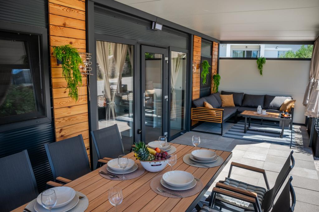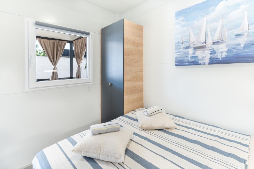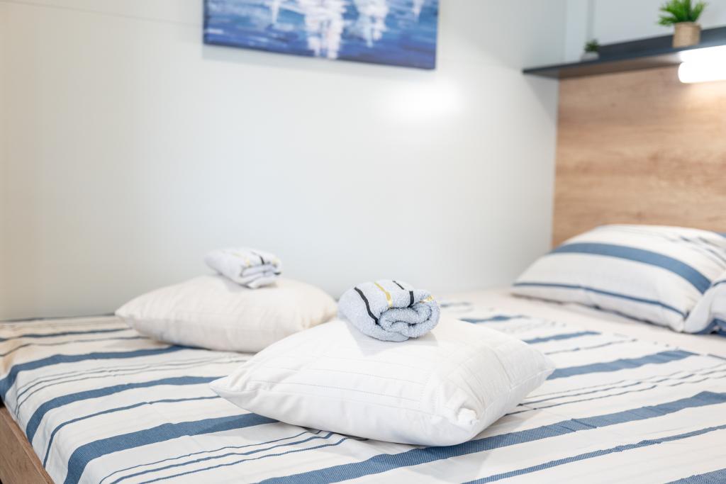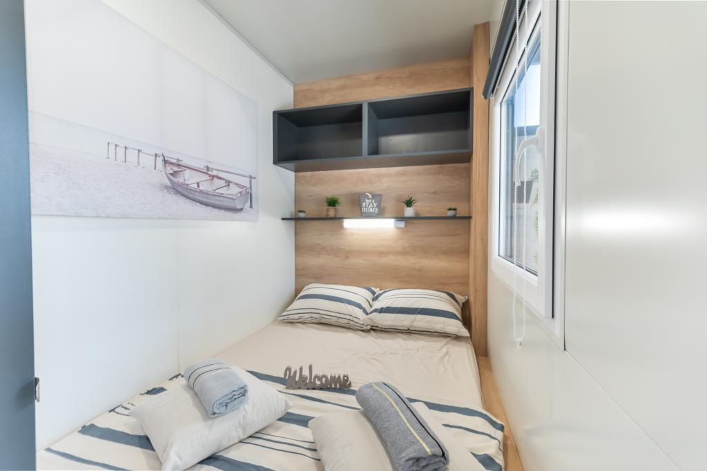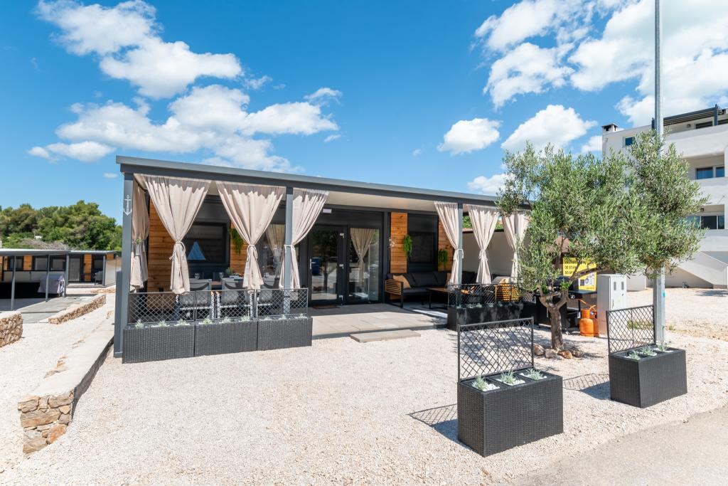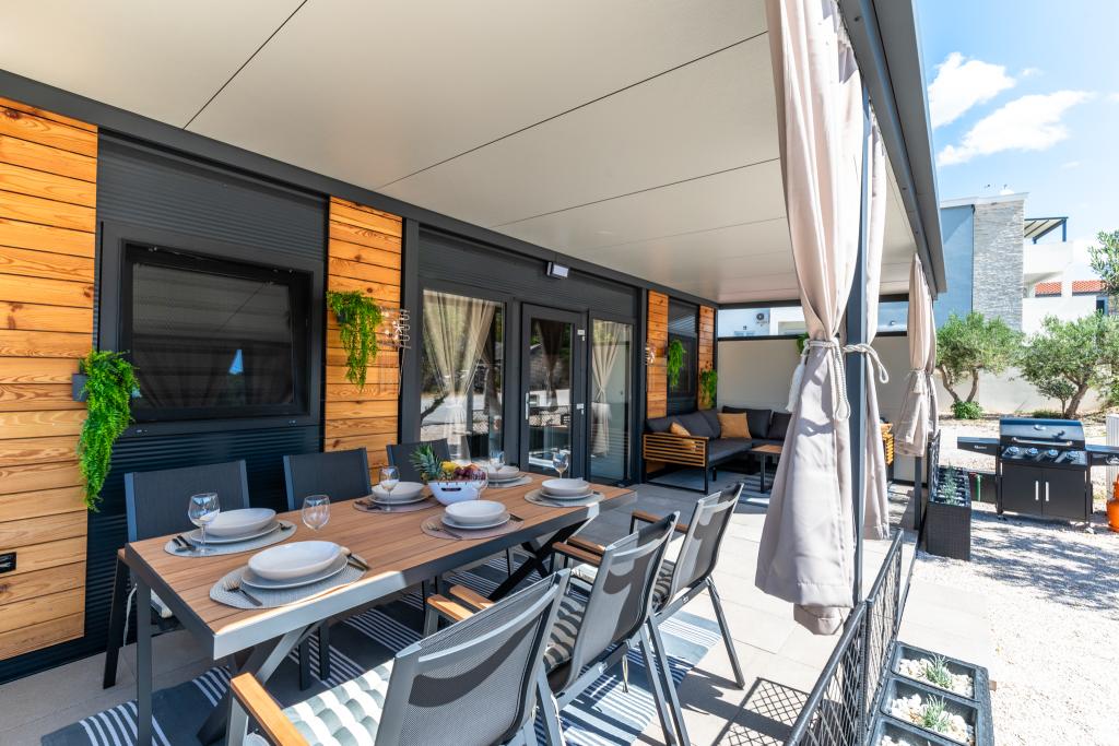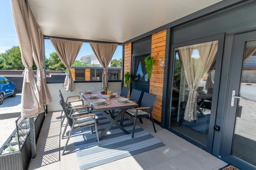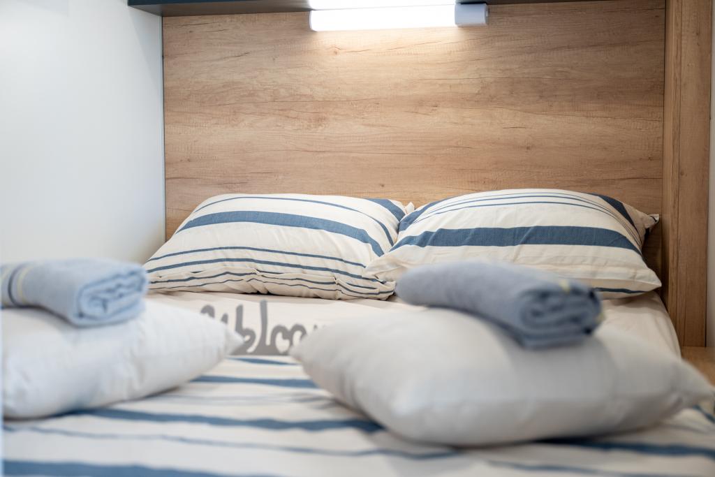 Odkryj idealne wakacje nad morzem w naszych uroczych domkach mobilnych, które znajdują się zaledwie 70 metrów od idyllicznej plaży Porat w spokojnym miasteczku Drage. Domki zapewniają optymalne połączenie komfortu i naturalnego otoczenia, idealne dla rodzin lub grup przyjaciół szukających spokojnego wypoczynku. Domy posiadają dwie sypialnie. W jednym znajduje się podwójne łóżko o wymiarach 160x200, natomiast w drugim pokoju znajduje się podwójne łóżko o wymiarach 140x200. Dodatkowo na rozkładanej sofie może spać dziecko do lat 5. Każdy pokój wyposażony jest w wygodne łóżka i świeżą pościel, zapewniając wypoczynek na jaki zasługujesz. Salon wyposażony jest w nowoczesne meble i telewizor, idealny do wieczornego relaksu. Kuchnia jest w pełni wyposażona we wszystkie niezbędne sprzęty, m.in. lodówkę, kuchenkę, ekspres do kawy, czajnik i kuchenkę mikrofalową, co pozwala na przygotowanie posiłków według własnego gustu. Rozkoszuj się poranną kawą lub wieczornym drinkiem na przestronnym tarasie o powierzchni aż 24m²!