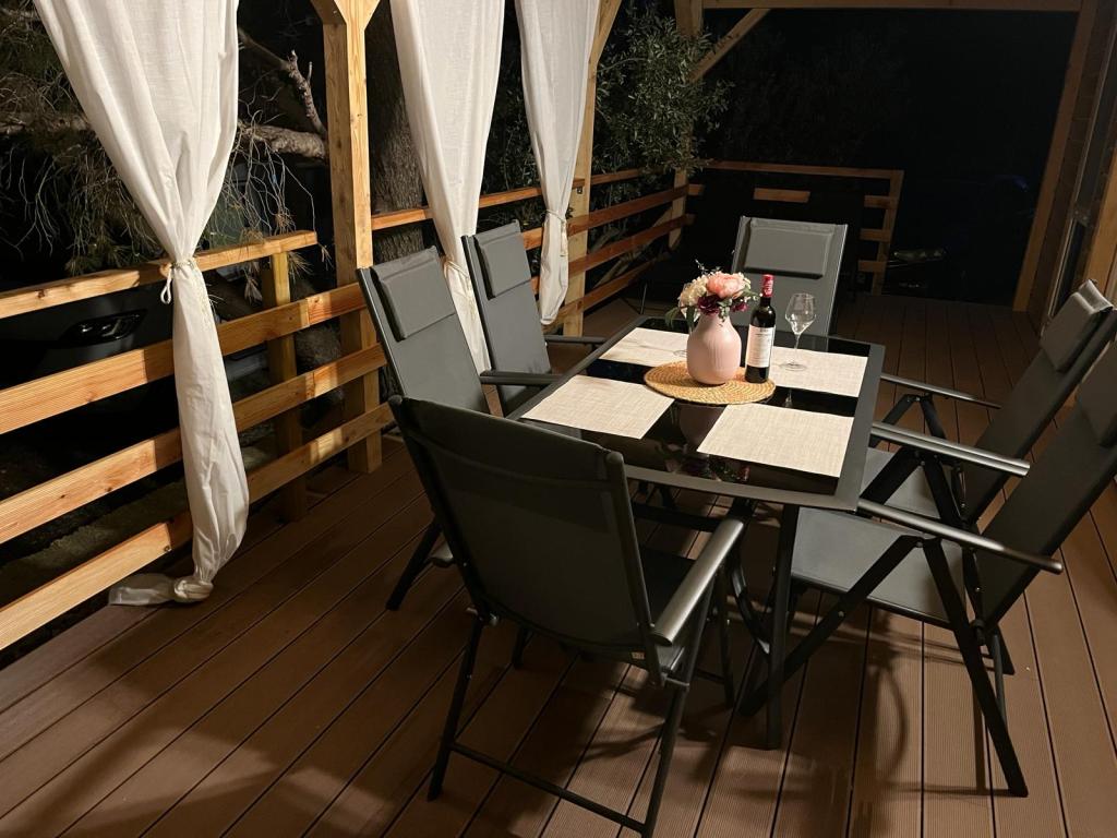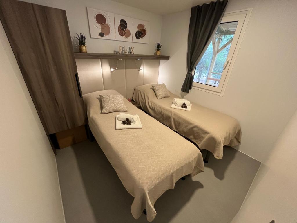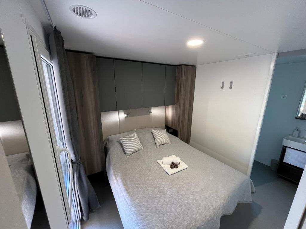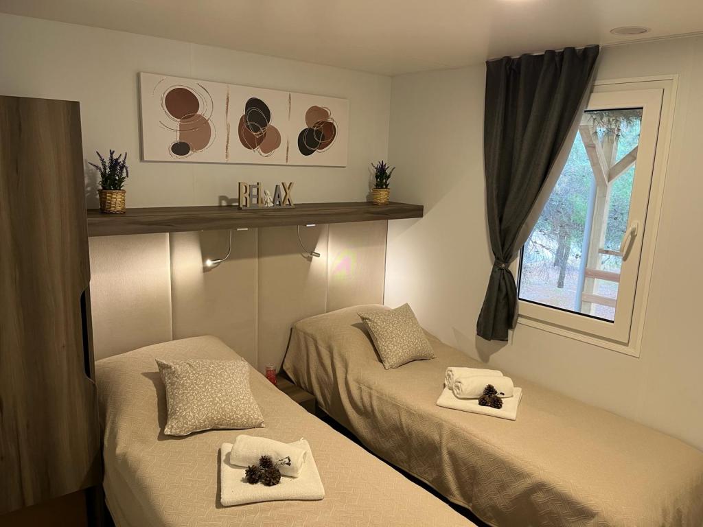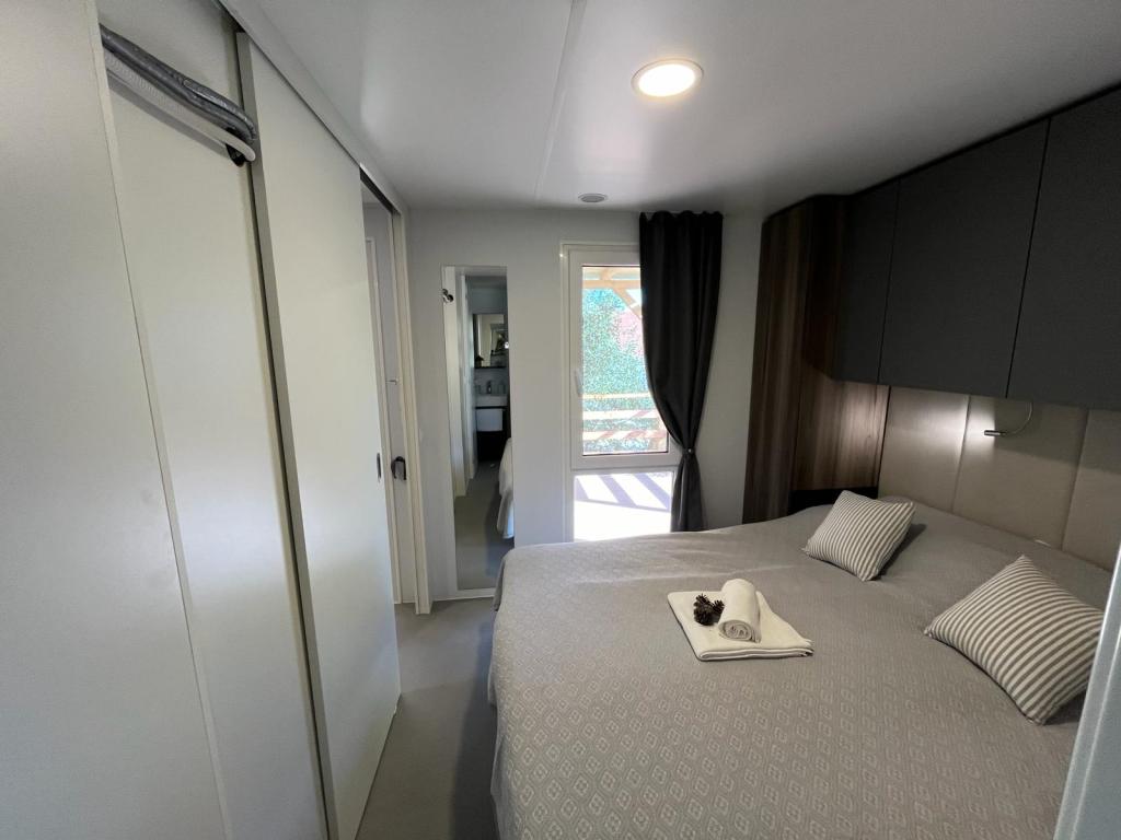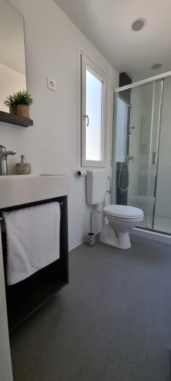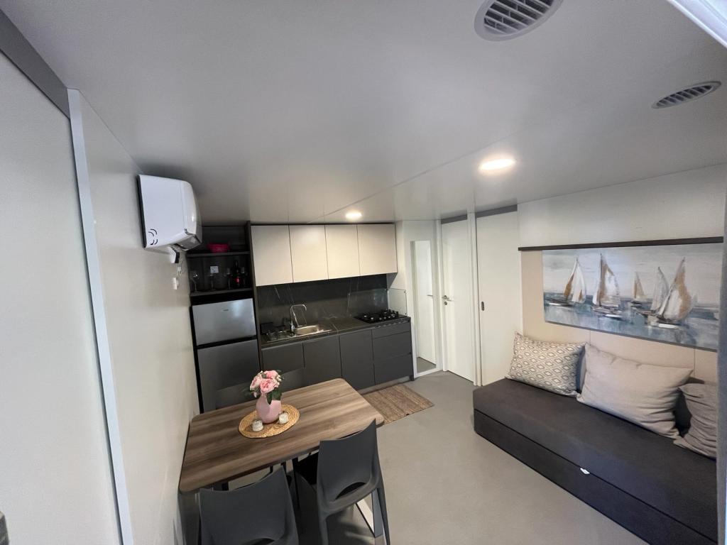 Domek mobilny o powierzchni 35m2 z tarasem o powierzchni 24m2, nowy, w pełni wyposażony, znajduje się na terenie kempingu Oaza Mira. Kemping jest sklasyfikowany jako 4****. Na terenie kempingu znajduje się węzeł sanitarny z możliwością korzystania z pralki, korty tenisowe, plac zabaw dla dzieci, restauracja, kawiarnie, basen. W pobliżu kempingu znajduje się również kilka plaż z błękitną flagą, marina, promenady. Odległość od kempingu: - Pakoštane 4 km - Biograd na Moru - Jezioro Vransko 3 km - Zadar 39 km - Park Narodowy Krka 36 km - Šibenik 24 km - Vodice 20 km Dom oferuje: - pokój z łóżkiem małżeńskim 160x200 cm - pokój z dwoma pojedynczymi łóżkami 90x200 cm - salon z rozkładaną sofą dla 2 osób - 2 łazienki z prysznicem i toaletą - kuchnię wyposażoną dla 6 osób - lodówkę z zamrażarką - czajnik elektryczny - płytę ceramiczną z 4 palnikami gazowymi - zmywarkę - Wi-Fi, Smart TV + Netflix - stół jadalny + 4 krzesła - 2 leżaki, stół i 6 krzeseł - 2 miejsca parkingowe przed domem mobilnym, - pościel i ręczniki