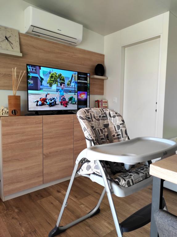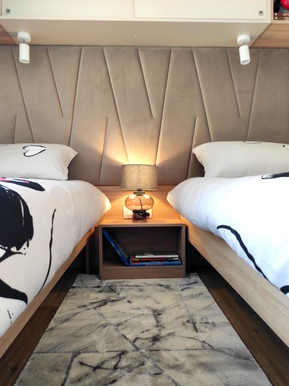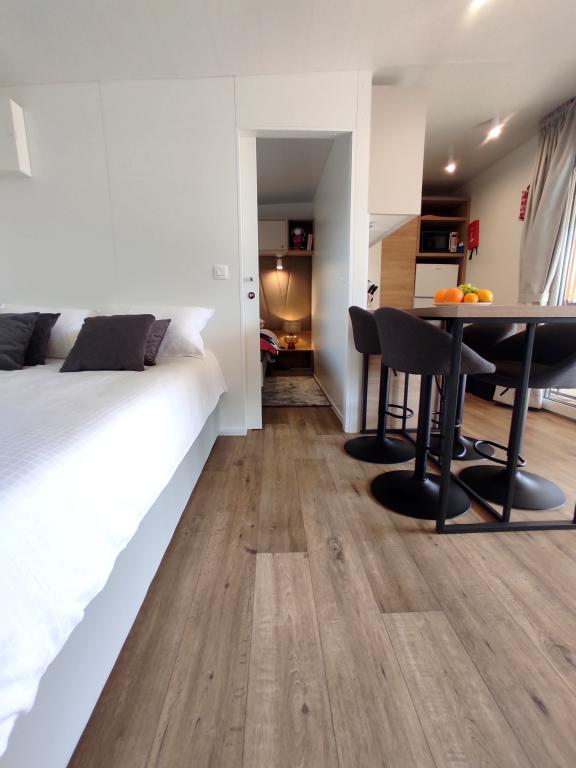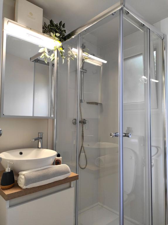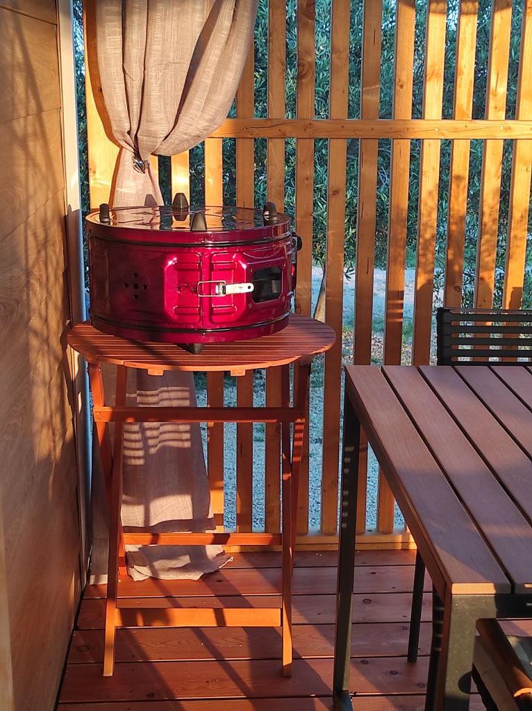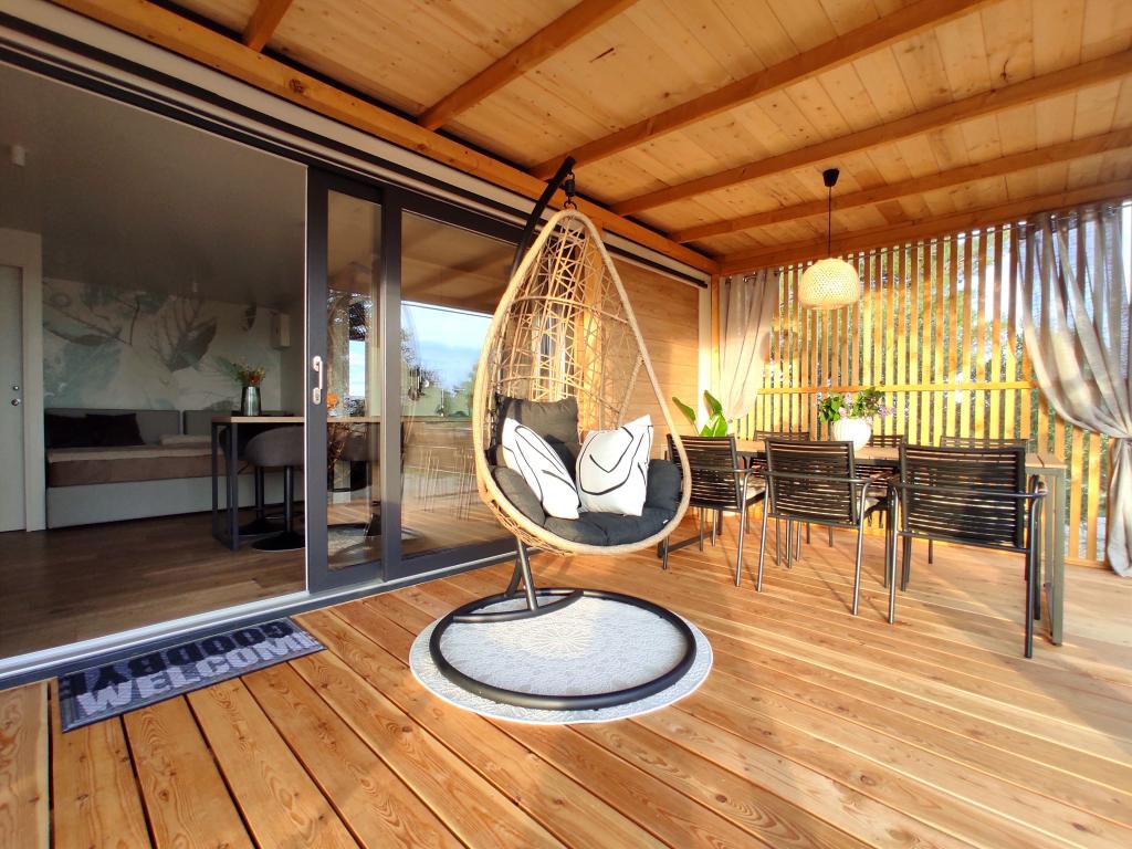 Świetna i harmonijnie zaaranżowana przyczepa stacjonarna. Każdy szczegół jest bardzo dobrze przemyślany. Znakomicie wyposażony na pobyt kilku osób. Plaża jest bardzo blisko obiektu. Taras jest ciemny!