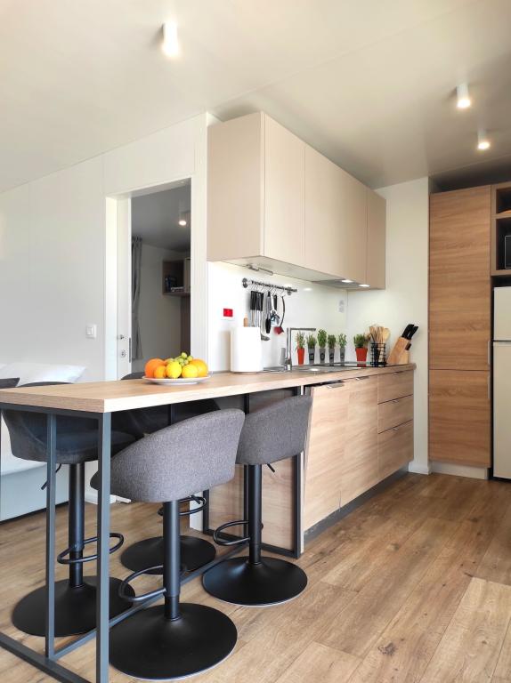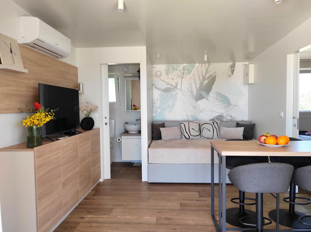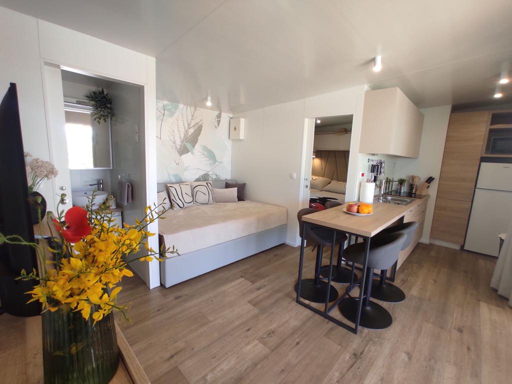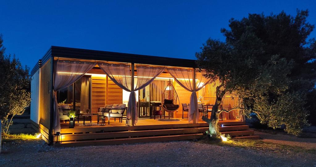 Zen Zone Premium Mobile Home to nowocześnie urządzony dom, w pełni wyposażony w sprzęt AGD i wszystko, czego potrzebujesz, aby po prostu odpocząć i cieszyć się długo wyczekiwanym urlopem. Dom łącznie z tarasem ma powierzchnię 65 m2 i przestronny ogród, w którym można cieszyć się wakacjami. Picie porannej kawy na przestronnym tarasie, przy akompaniamencie śpiewu ptaków i zapachu natury, który przynosi morska bryza, brzmi jak idealny początek dnia. Jeśli chcesz ochłodzić się w morzu, jesteś zaledwie 150 metrów od plaży. Jeśli zdecydujesz się pozostać w cieniu tarasu, poczytać dobrą książkę w ciszy lub po prostu zrelaksować się korzystając z bezpłatnego WiFi, obejrzeć telewizję lub po prostu zdrzemnąć się, zadbaliśmy o to, abyś otrzymał to wszystko w mobilnym domu Zen Zone. Jeśli nie masz ochoty spędzać czasu w kuchni na gotowaniu, udostępniamy Ci duży grill i piekarnik elektryczny, dzięki którym możesz w prosty, ale różnorodny sposób przyrządzać pyszne dania. Dom przeznaczony jest dla całej rodziny, grupy przyjaciół i wszystkich, którzy chcą wypocząć, zrelaksować się i cieszyć spokojem dziewiczej przyrody.