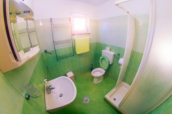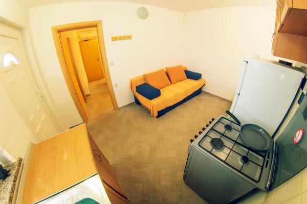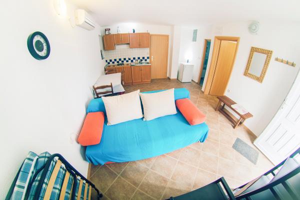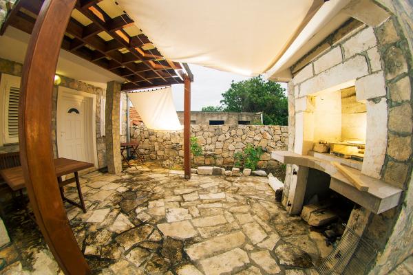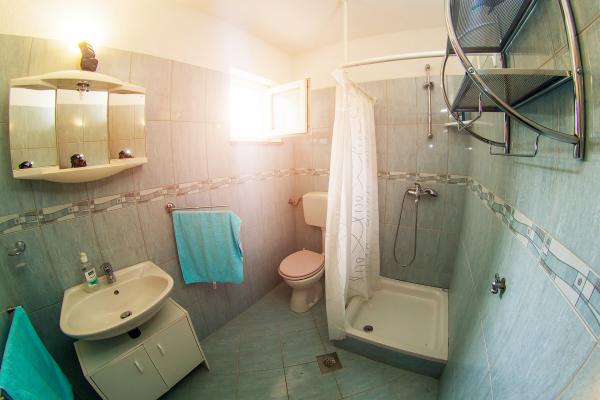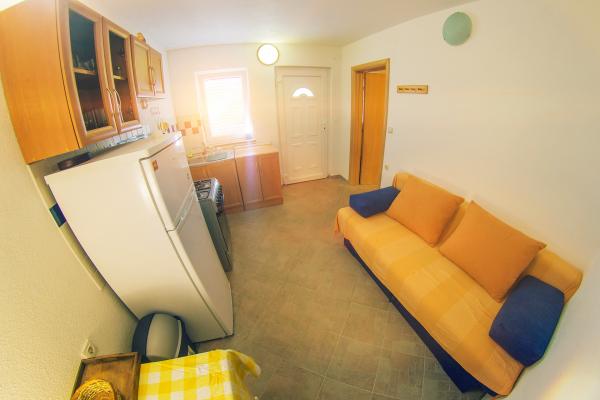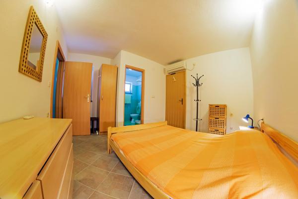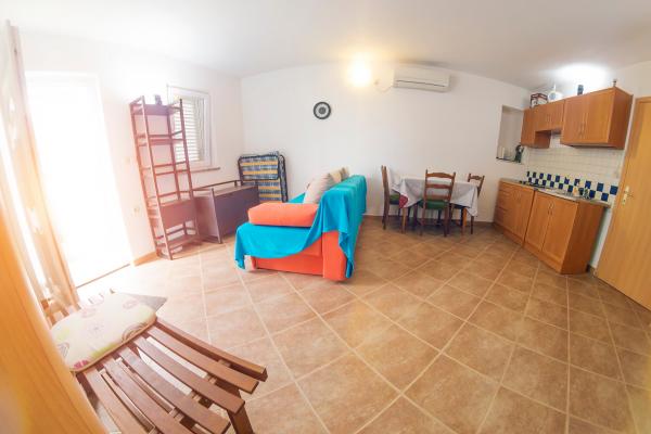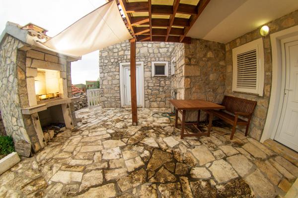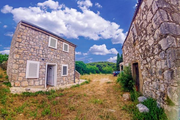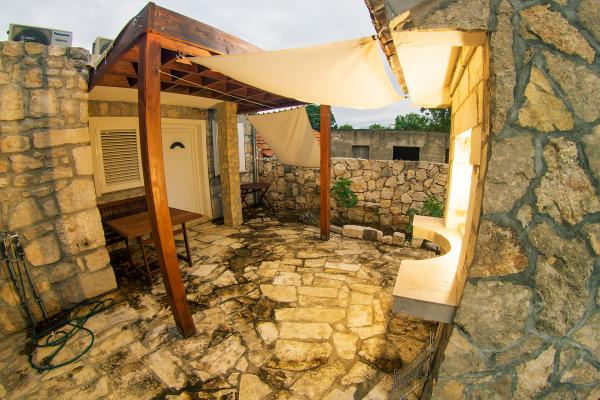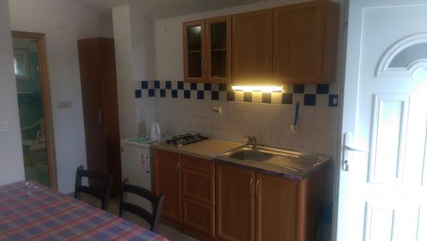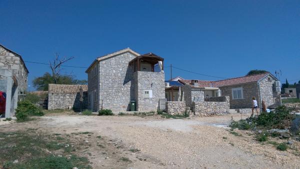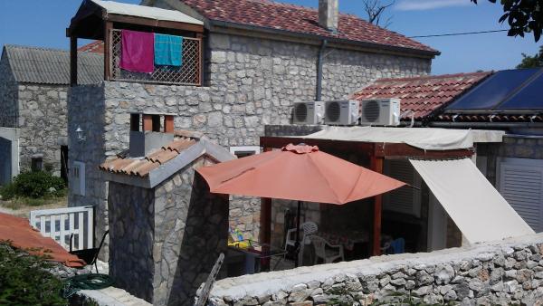 Odrestaurowany kamienny dom z 19. wieku, położony jest w cichej, bocznej ulicy niezamieszkałych domów wokół niego. Inne małe domy i uliczki z pojazdów samochodowych znajdują się 30-50 m. Dom mamy parking dla 3 samochodów. Dom posiada 3 oddzielne apartamenty wyposażone są w klimatyzację, którymi są: - A 2 2 (a) jest parter mieszkanie 32 m2 (drzwi na pierwszym zdjęciu) - A 2 2 (c) jest mieszkanie na parterze, 28 m2 od strony dziedzińca (drzwi na czwartym zdjęciu) - A 2 2 (b) przedstawia zestaw na pierwszym piętrze 32 m2 Apartamenty składają się z: - łazienka z prysznicem z ciepłą i zimną wodą, WC i umywalka, lustra i szafki, - pokój dzienny, gdzie znajduje się również dodatkowa sofa w rozmiarze 2x1, 4m nadaje się dla 2 osób oraz kuchnię z naczyniami i kuchenką gazową, zlewozmywak, lodówka. Sypialnia wyposażona jest w jednym rozmiarze łóżko 2x1. 5m, szafa i biurko na bagaż. Pralka jest wspólna i znajduje się w kotłowni w zagrodzie. Klimatyzacja jest w każdym mieszkaniu.