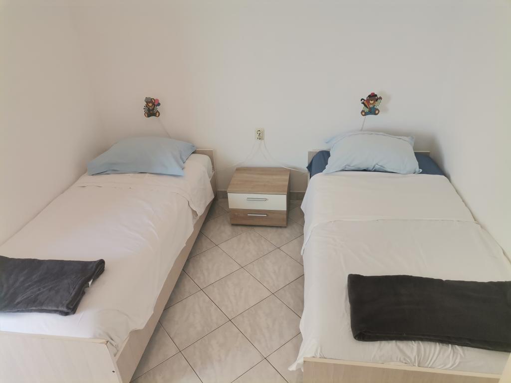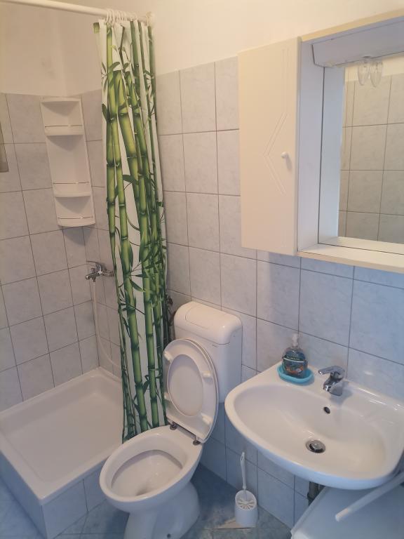 Wynajmujemy 2 dwupokojowe apartamenty o powierzchni 45 m2, położone w pierwszym rzędzie do morza, w cichej i relaksującej zatoce Dumboka, położonej poniżej wioski Dragova na Dugim otoku, gdzie znajduje się 5 domów. Zatoka jest idealna na odpoczynek od stresu nagromadzonego w ciągu roku, morze przed domem jest krystalicznie czyste do pływania bez granic i na tyle głębokie, że można zacumować swoją łodzią! Apartament 1 (☆☆) Kuchnia / Salon, 2 sypialnie (obie z podwójnymi łóżkami) + dodatkowe łóżko, Toaleta, Balkon, Podwórko Apartament 2 (☆☆☆) Kuchnia / Salon, 2 sypialnie (podwójne łóżko, pokój dziecięcy z 2 łóżkami) łóżka) + dostawka, Toaleta, Balkon Oba apartamenty posiadają wi-fi, klimatyzację, pralkę i antenę satelitarną. Morze znajduje się zaledwie kilka metrów od domu, aw bezpośrednim sąsiedztwie znajduje się plaża Paprenica (5-6 min pieszo), a inne plaże są nieco dalej (10-15 min samochodem). Najpiękniejsze, najbardziej odpowiednie i najbliżej wioski to: Sakarun, Lanterna, Veli žal ... w pobliżu gminy Sali znajduje się atrakcyjna jaskinia.