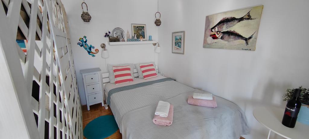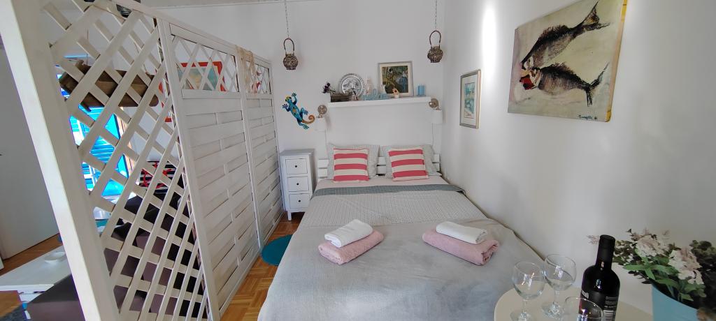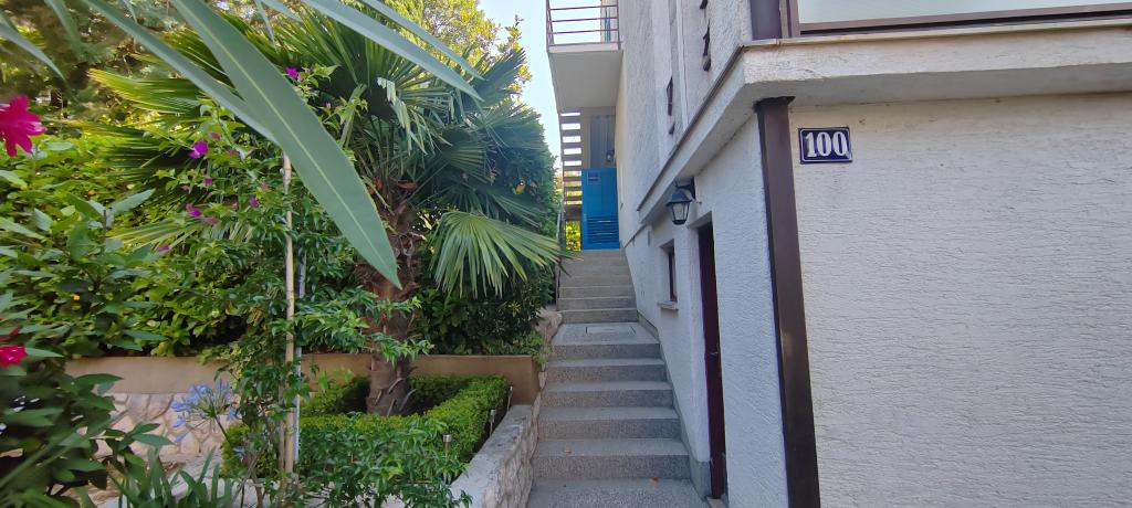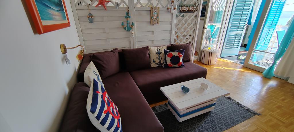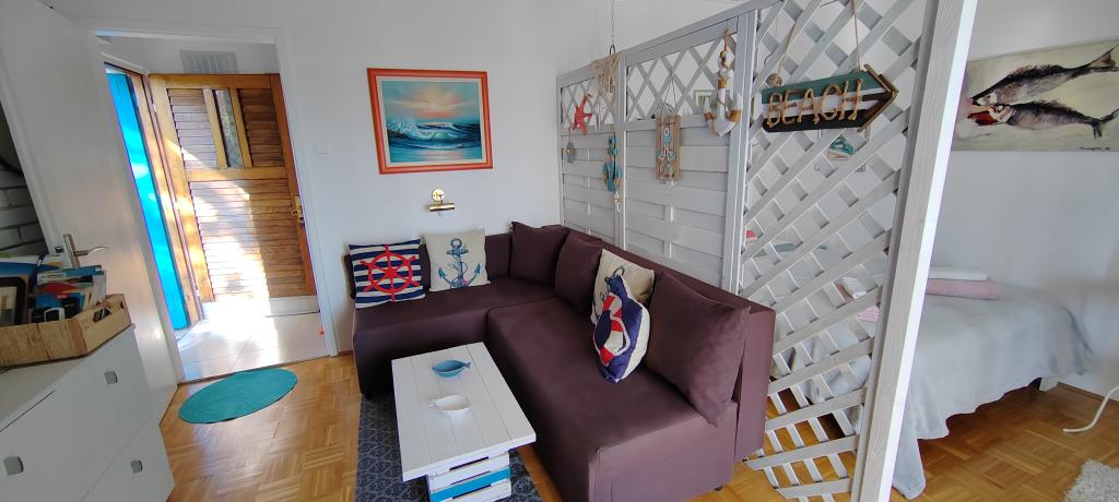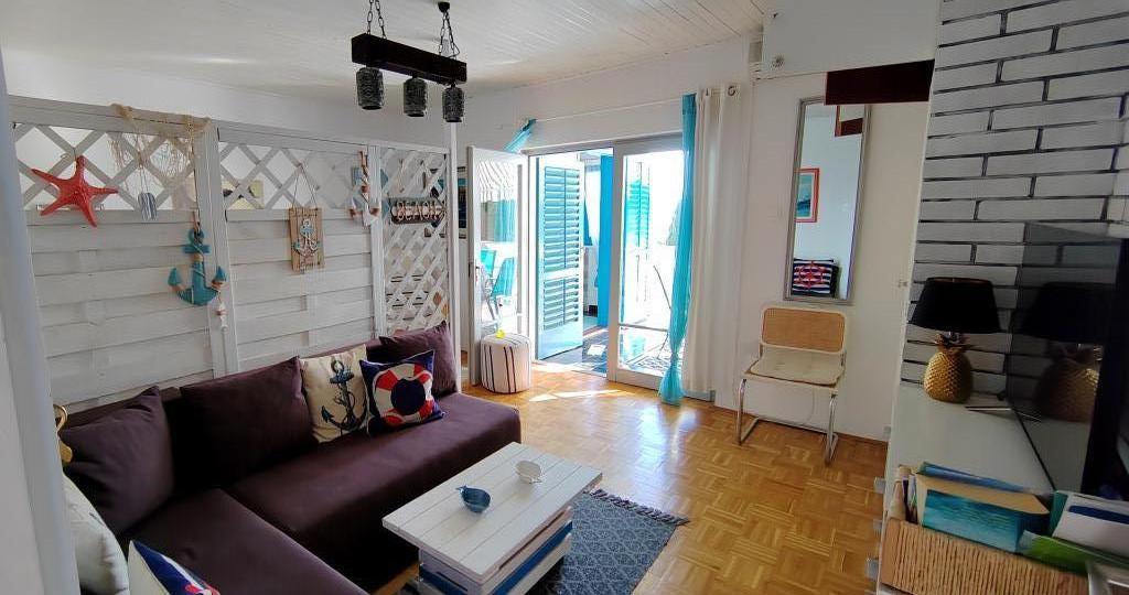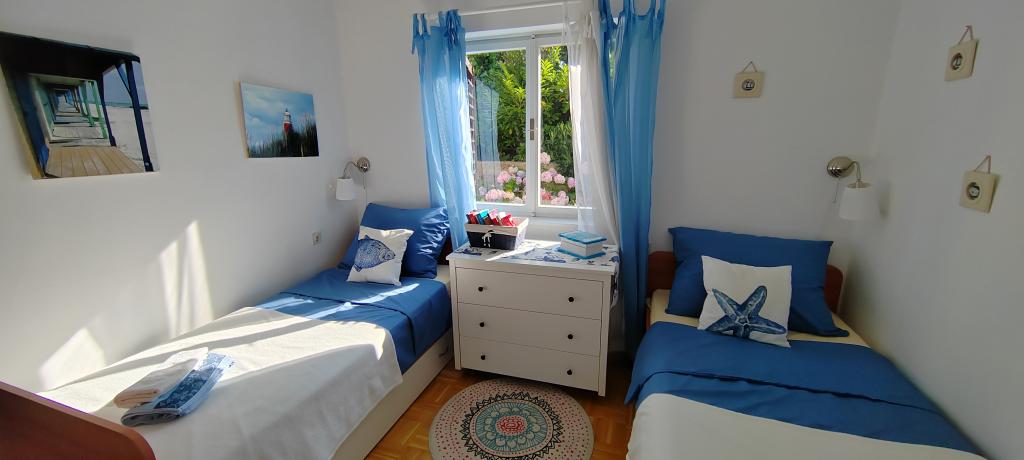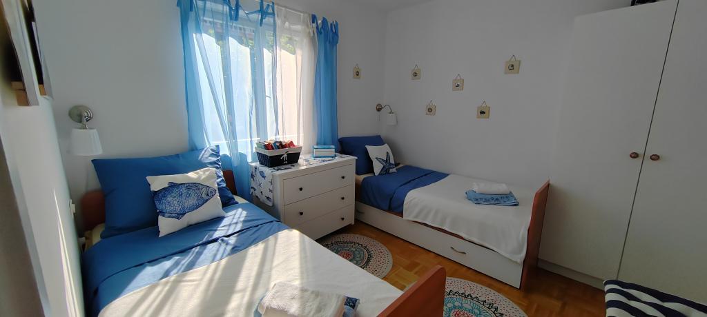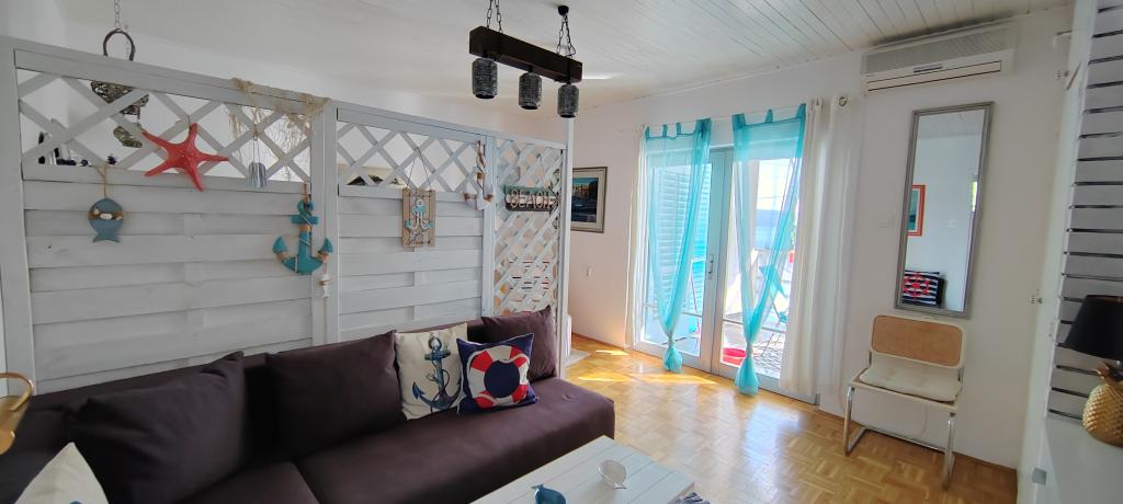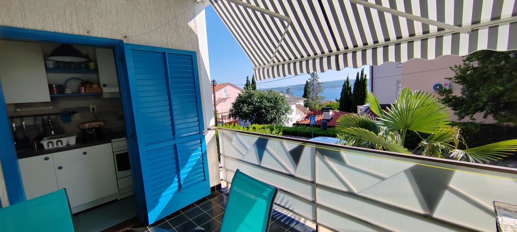 Apartament znajduje się w spokojnej miejscowości Dramalj, 2 km od miasta Crikvenica. Odległość do plaży wynosi 250 m, a do wyboru są: plaża żwirowa, betonowa i kamienista. Sklep znajduje się 100 m od obiektu, a także przystanek pociągu turystycznego, który jedzie do Crikvenicy, Selce i Kačjak. Do Crikvenicy można również dojść pieszo wzdłuż nadmorskiej promenady, spacer zajmuje około 20 minut. Apartament znajduje się na pierwszym piętrze i składa się z salonu, oddzielnej sypialni z łóżkiem małżeńskim z dostępem do pięknego tarasu z widokiem na morze, który obejmuje kuchnię i kolejny pokój z oddzielnymi łóżkami i łazienką. Goście mają zapewniony parking.