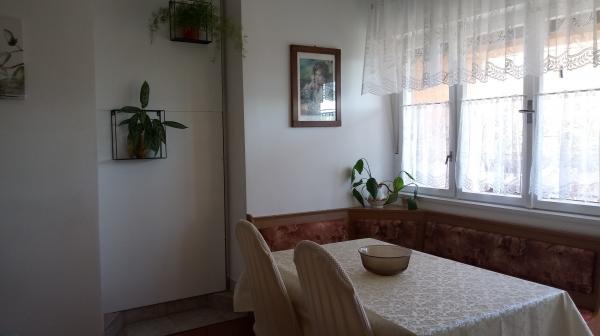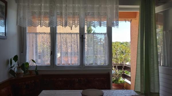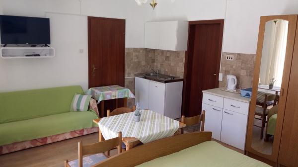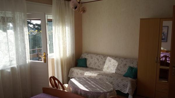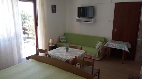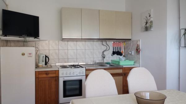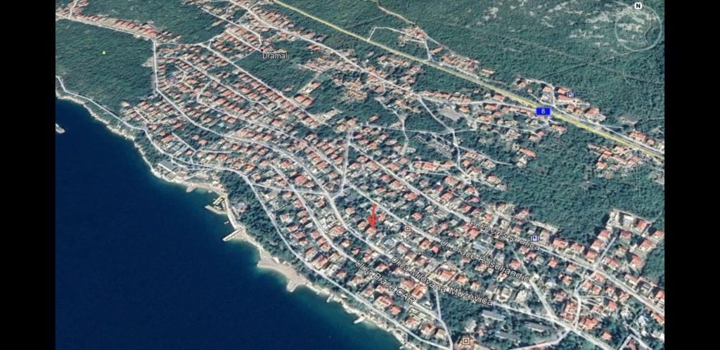 Apartament znajduje się w Dramalj, ulicy Milovan Muževiža 116., z centrum Crikvenica połączonym z autobusem miejskim, łodzią miejską i atrakcyjnym pociągiem turystycznym. Dom ma kilka jednostek mieszkalnych, które znajdują się na 1 piętrze domu rodzinnego, a reszta to właściciele mieszkający na żywo. Apartamenty są oddalone od morza o około 5 minut. chodzić do sklepu spożywczego i tak samo do plaży. Idealny dla małych rodzin. Mieszkanie składa się z sypialni z podwójnym łóżkiem i dodatkowym łóżkiem, w pełni wyposażonej kuchni, łazienki i przedpokoju. Wejście do mieszkania znajduje się z tyłu domu i prowadzi bezpośrednio do kuchni, skąd roztacza się piękny widok na morze i wyspę Krk, a także balkon przed sypialnią.